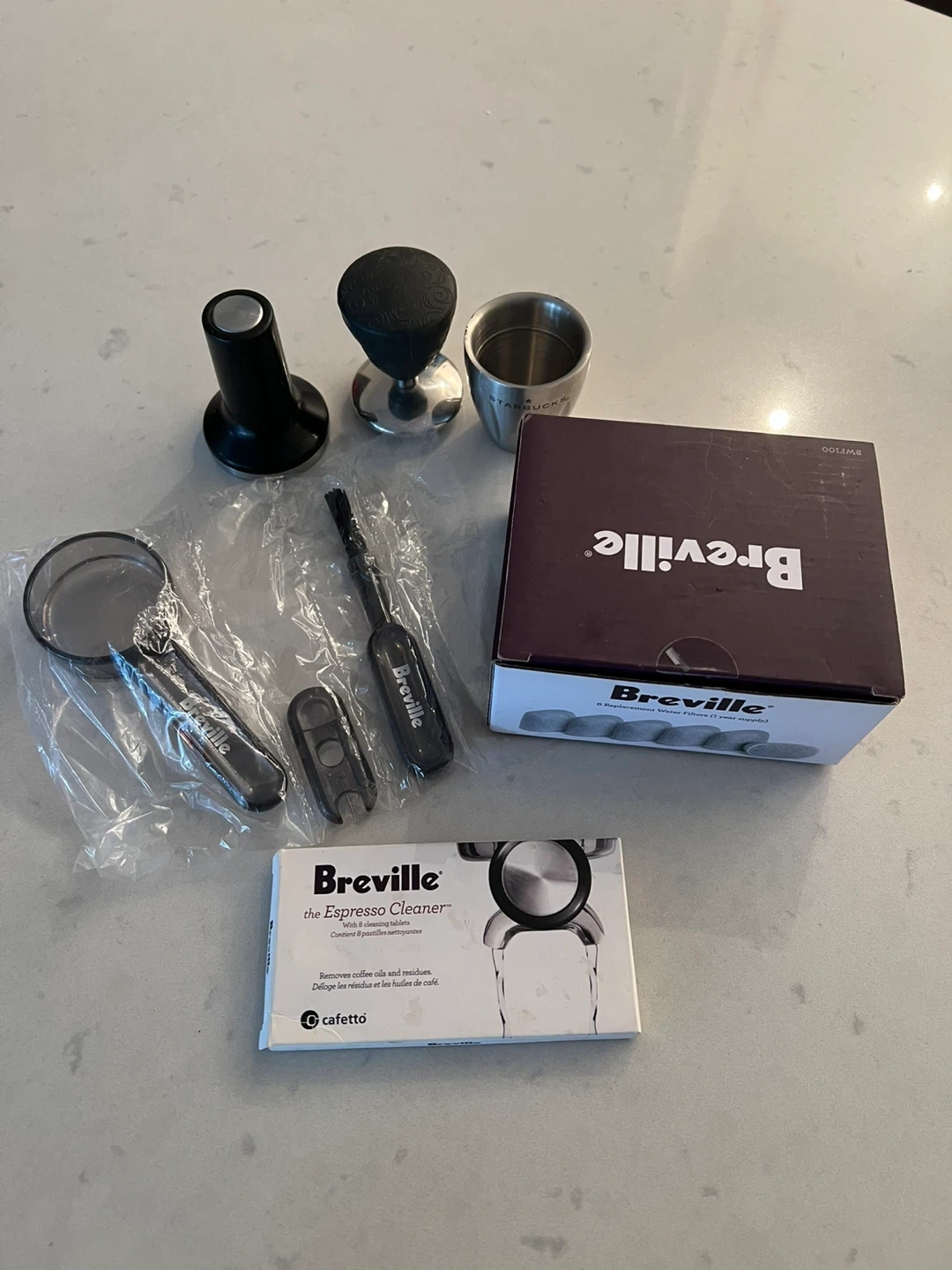 Selling a Breville espresso machine cleaning and maintenance kit. Includes various cleaning tools and water filters to keep your machine in tip-top shape. Comes with original boxes. Two cleaning tablets & three replacement waters filters left.