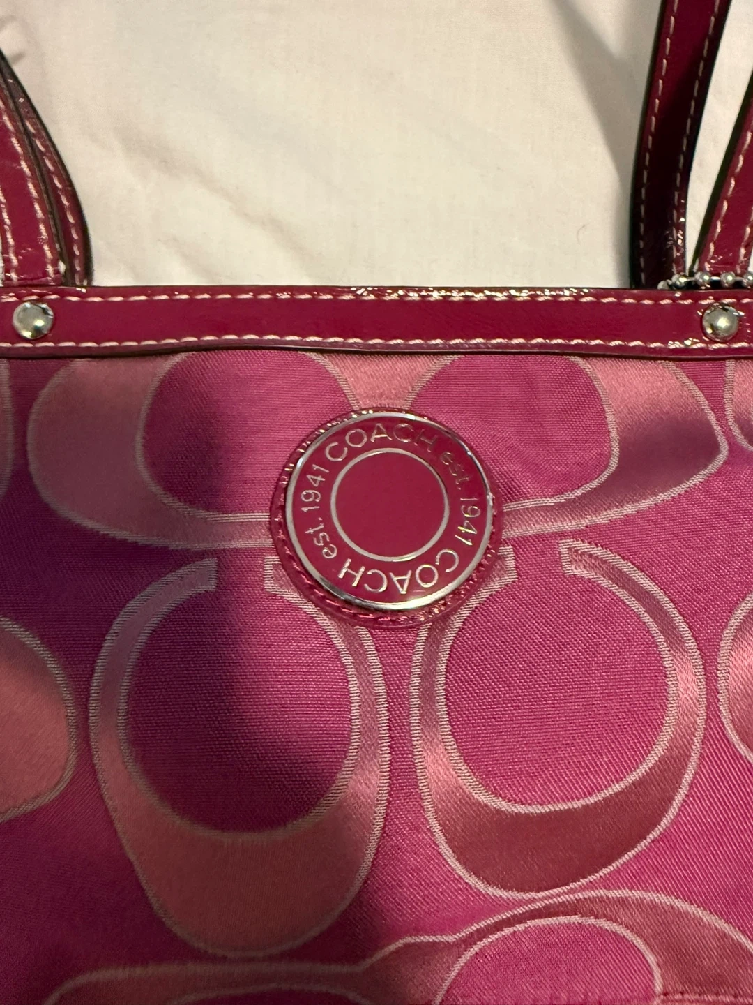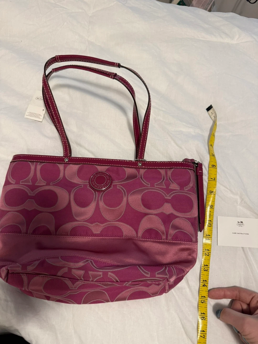 Buy & SellCoach Signature C Design Pink Tote BagCoach Signature C Design Pink Tote Bag$56Selling a cute Coach tote bag with the signature 'C' design! It's a stylish pink colour and is in great condition. Comes with care instructionsConditionNewBrandCoachWHERE TO MEETTownline and AdelaideView MapSELLERverifiedMelEastdale812 reviews1 chats·0 favorites·9 viewsSEND CHAT TO SELLERHi Mel! I’m interested in your listing.Hi Mel! I’m interested in your listing.Get the Karrot app to chatSign In to chat