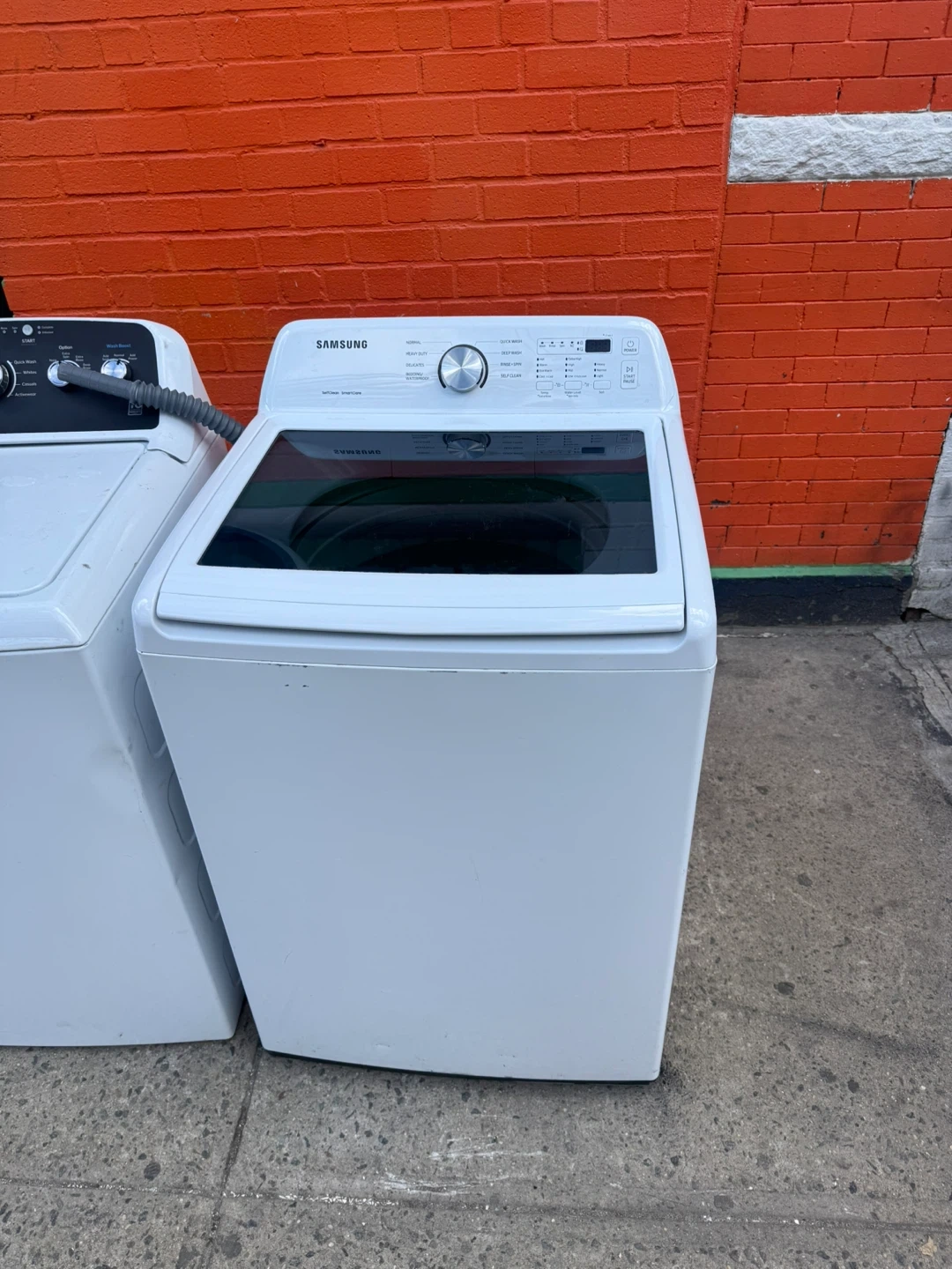 This is a white Samsung top load washing machine. It has various wash cycles including Normal, Heavy Duty, Delicates, and Self Clean. The machine also offers Quick Wash and Deep Wash options.