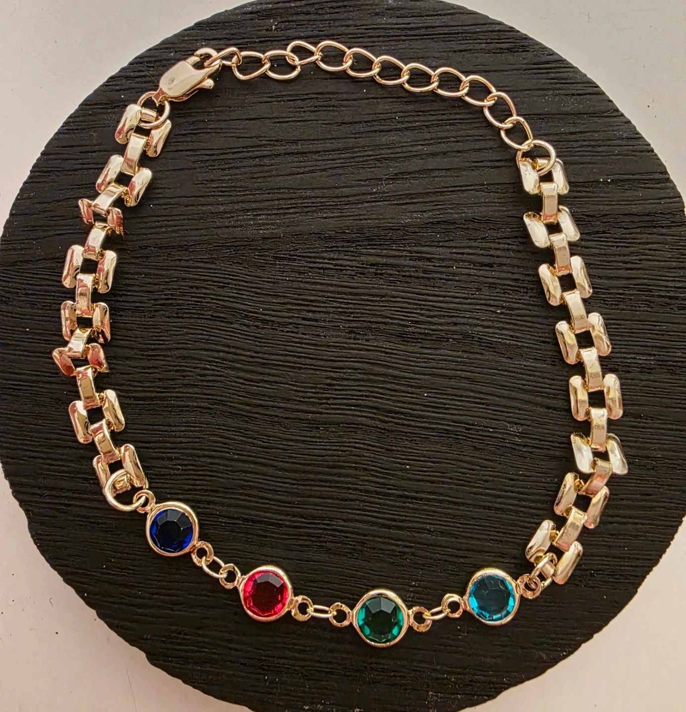 Gold-tone Chain Bracelet with Gemstones