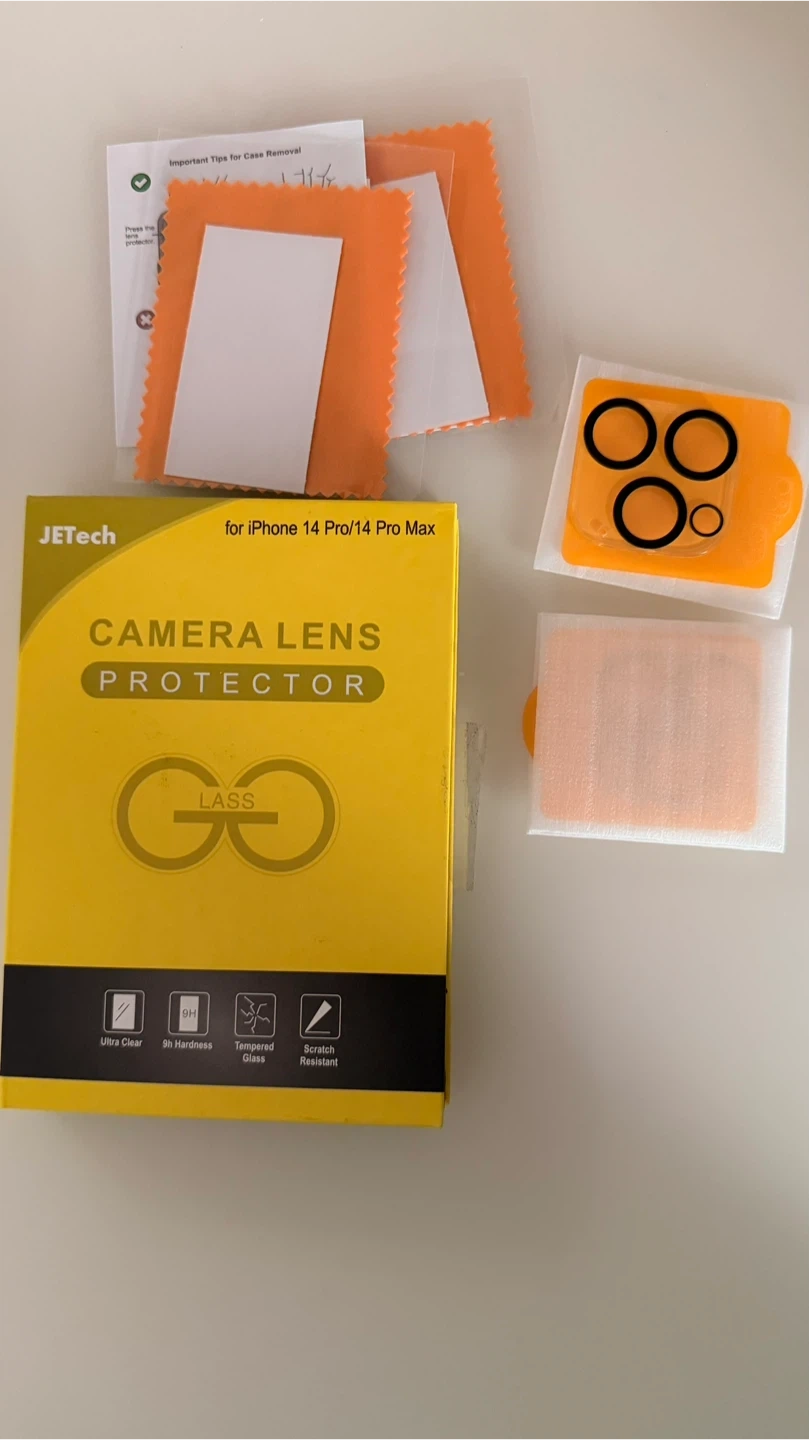 Selling a JETech camera lens protector for iPhone 14 Pro/Pro Max. It's brand new and comes with the box. Features include: