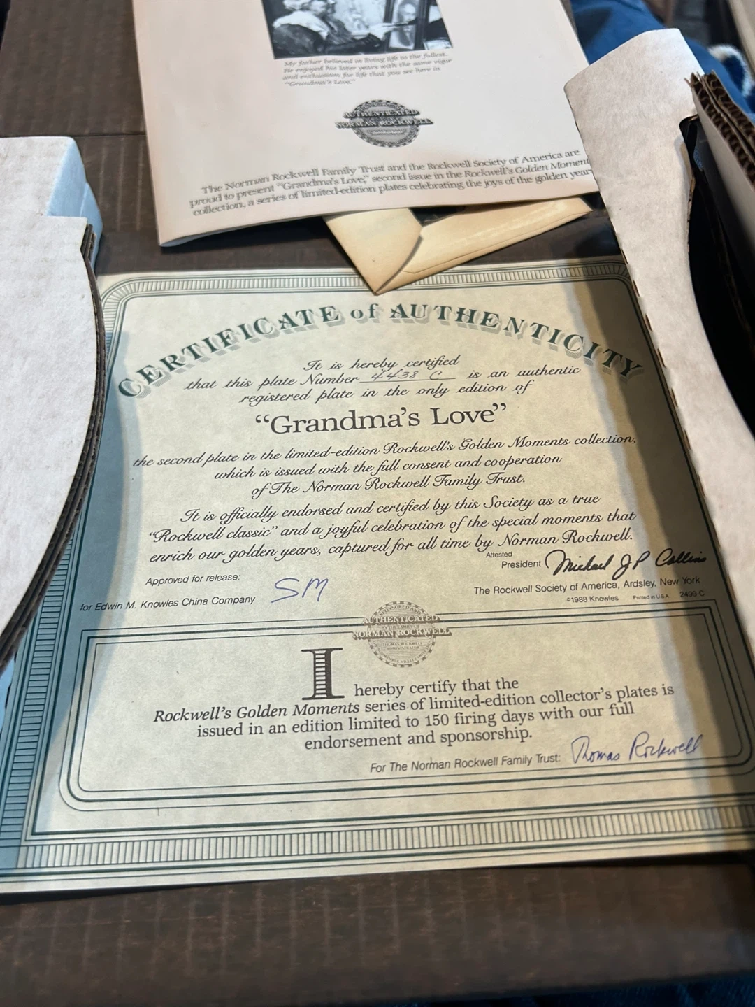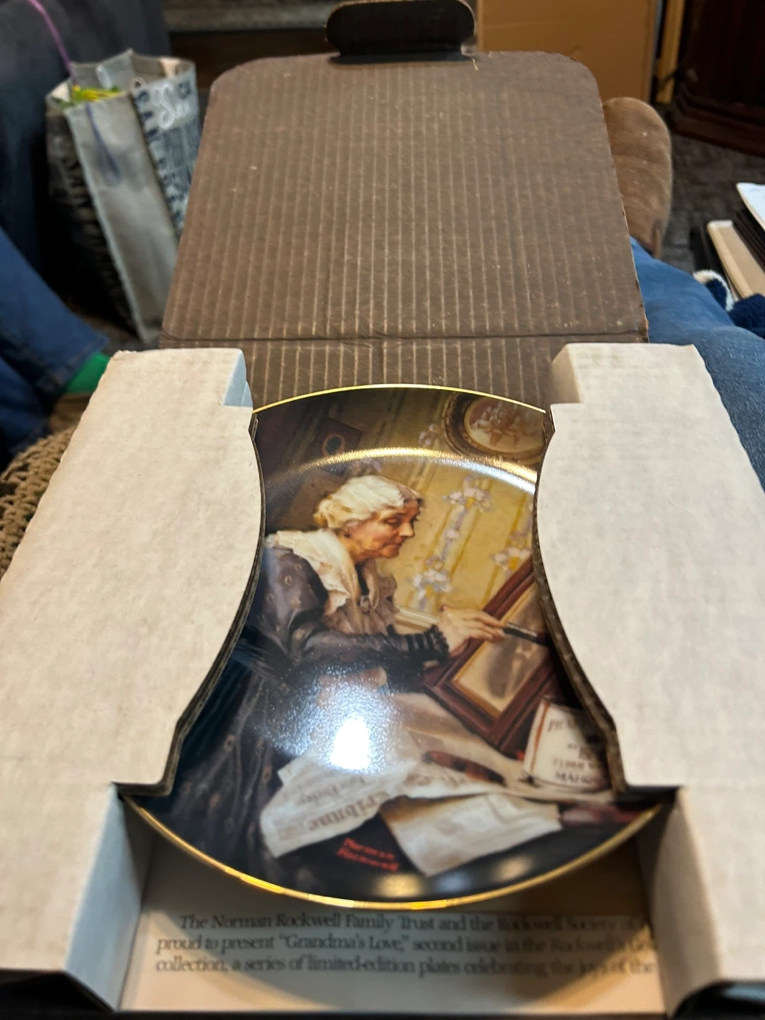 This is the second issue in the Norman Rockwell Golden Moments collection, titled "Grandma's Love". It's an authentic registered plate, officially endorsed and certified by The Norman Rockwell Family Trust. The plate comes with a certificate of authenticity and is part of a limited-edition series.