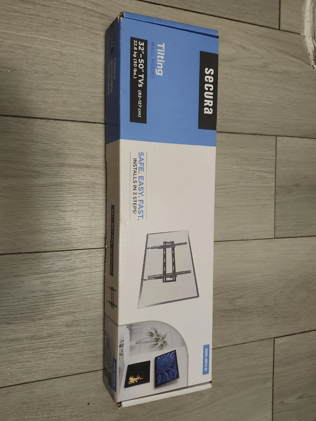 Secura tilting wall mount for TVs between 32" and 50". It supports up to 22.6 kg (50 lbs). Installation is safe, easy, and fast, done in 3 steps! This mount is inclinable. I can sell 2 for 25$ :)