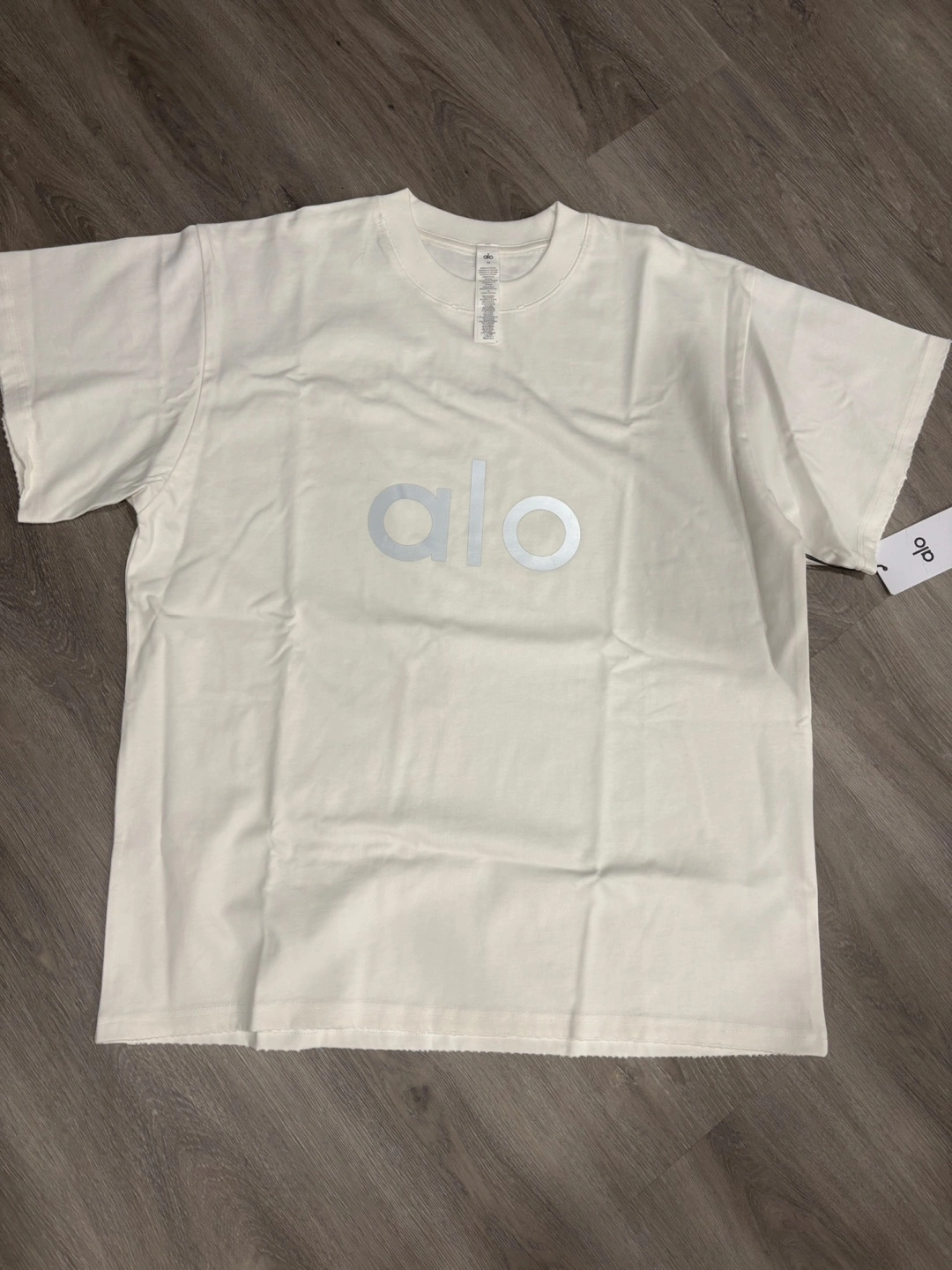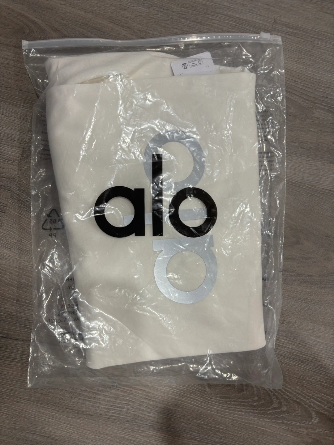 This is a brand new Alo Yoga t-shirt in a lovely cream colour! It's a size medium and is still in the original packaging. The material is 86% cotton and 14% elastane, so it's nice and stretchy and comfy