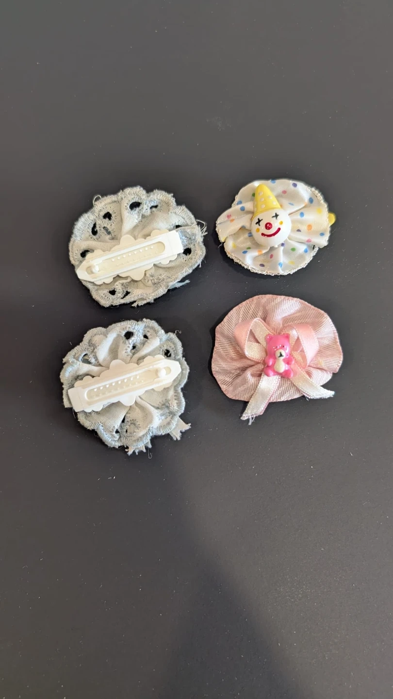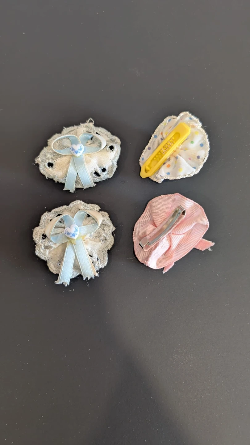 vintage bow, baby barrettes, dog barrettes,vintage 1980s , set of 4 ribbon flower, doll barrettes, baby boutique