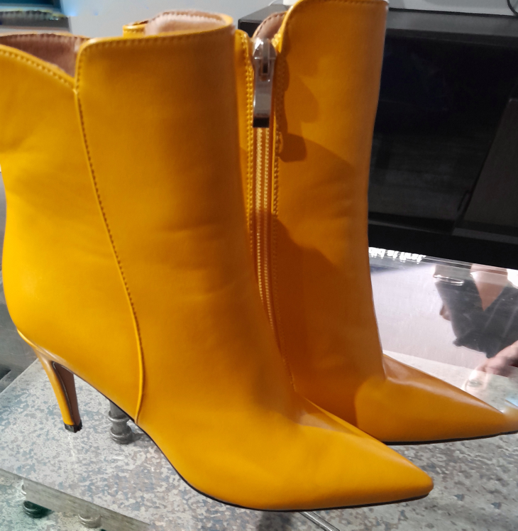 I'm selling a pair of yellow heeled ankle boots. stilleto heel booties.They are a size 6.5. Perfect for adding a pop of colour to your outfit!