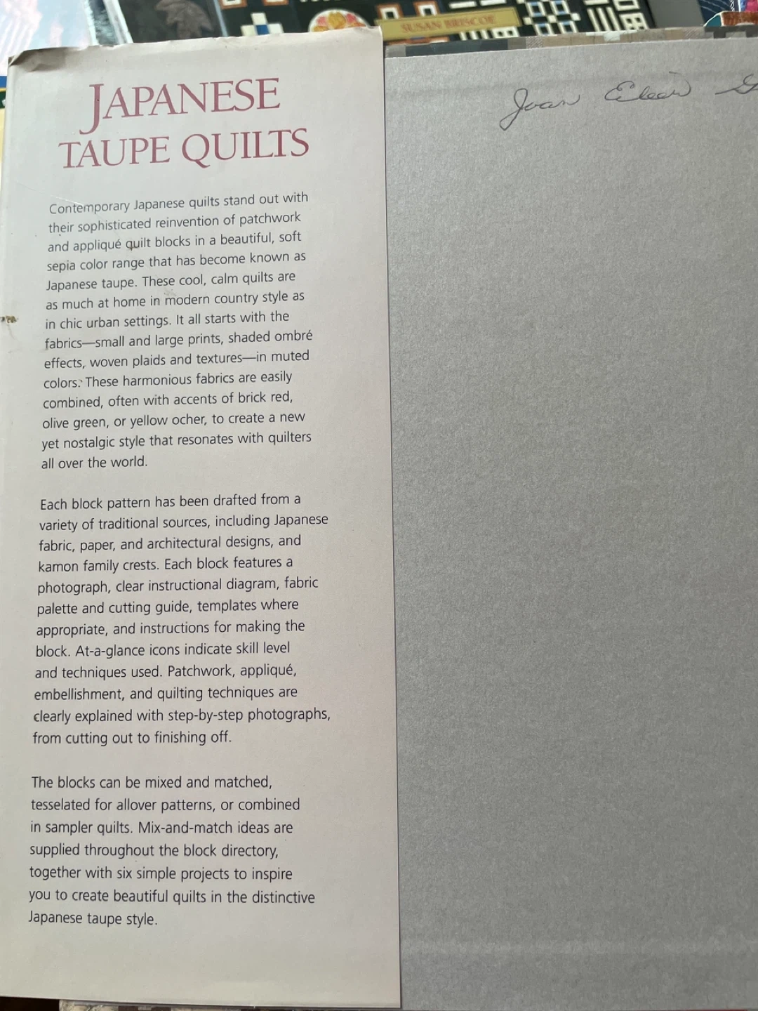 Japanese Taupe Quilts Book by Susan Briscoe