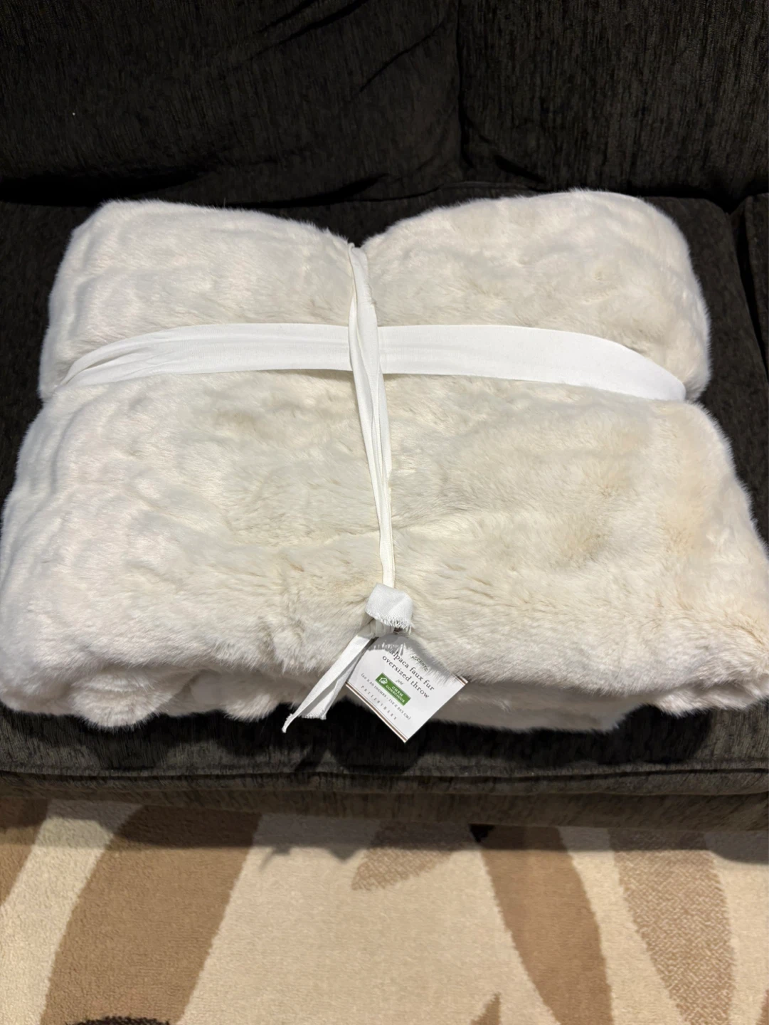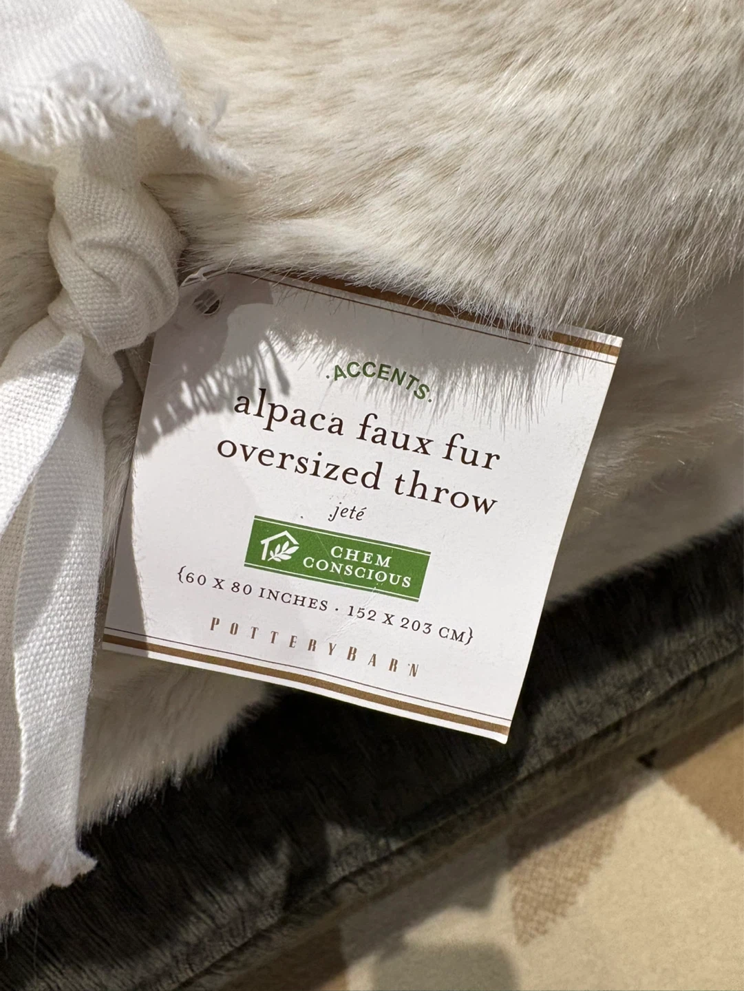 This is an oversized throw made with alpaca faux fur. It measures 60 x 80 inches (152 x 203 cm). It's perfect for adding a touch of cozy luxury to your living space.