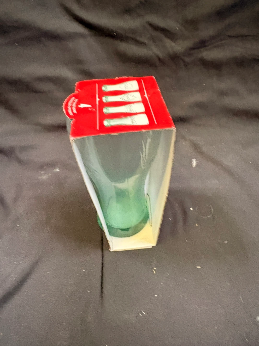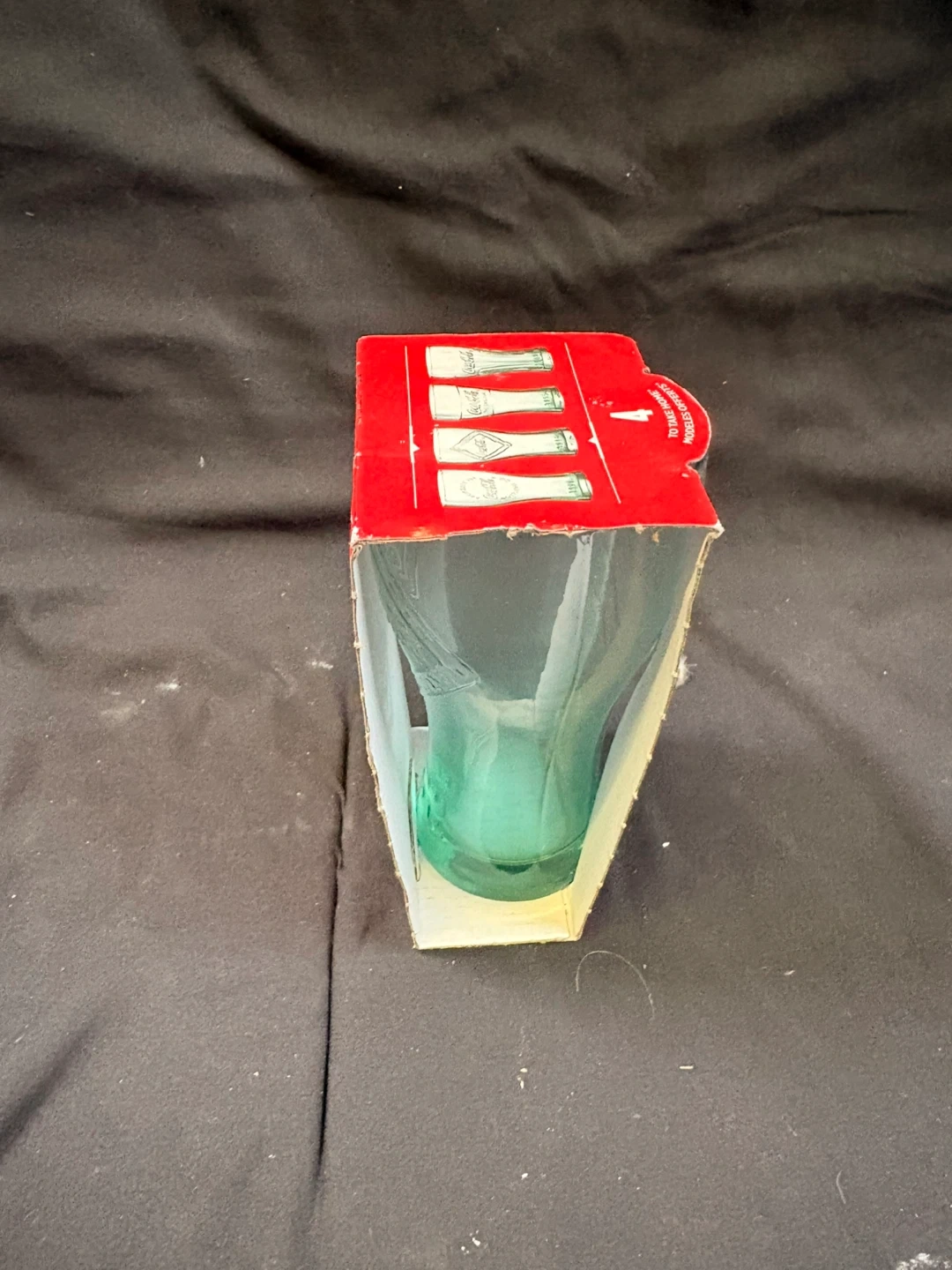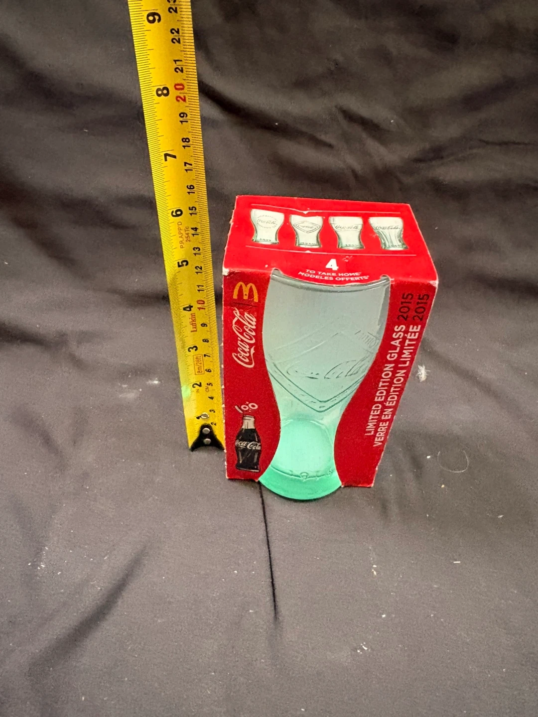 A Coca-Cola limited edition glass from 2015, celebrating 100 years of the Coca-Cola bottle. This glass features a green tint. It comes in it’s original packaging.