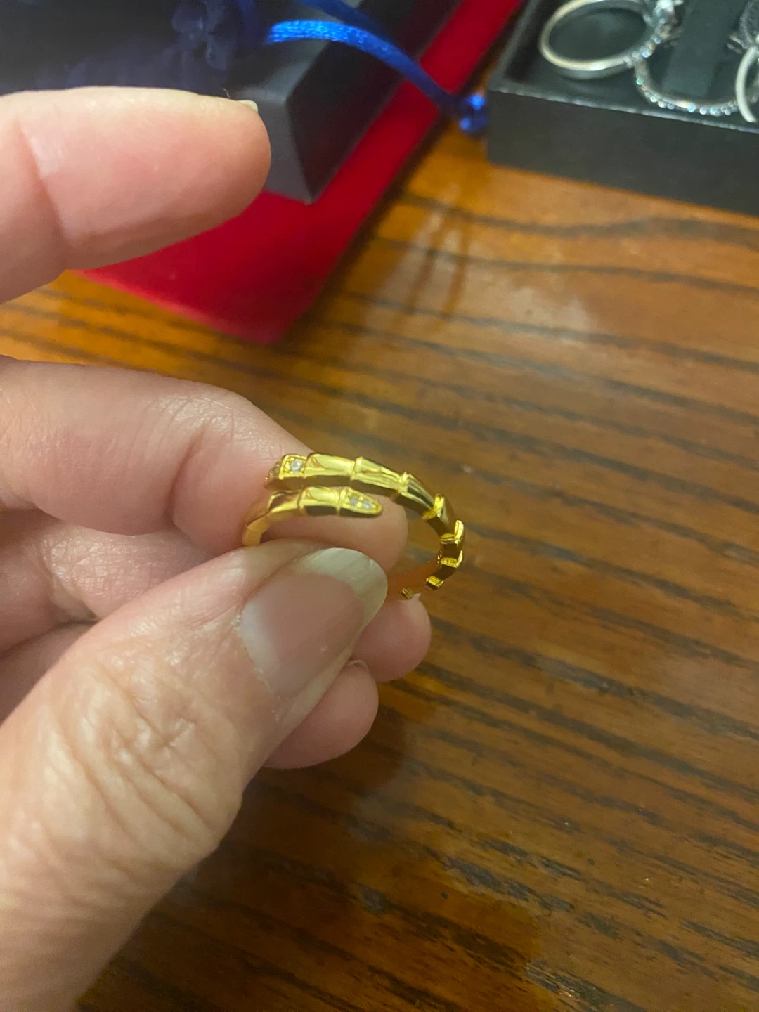 1 / 41 / 4Buy & SellGold Snake Ring silver gold plated.Gold Snake Ring silver gold plated.$38Selling a cute silver gold plated snake ring. It's in new condition and would make a lovely addition to your jewellery collection! Moissanite stonesWHERE TO MEETSherbrooke EdmontonView MapSELLERverifiedSarinratSherbrooke812 reviews0 chats·0 favorites·80 viewsSEND CHAT TO SELLERHi Sarinrat! I’m interested in your listing.Hi Sarinrat! I’m interested in your listing.Get the Karrot app to chatSign In to chat