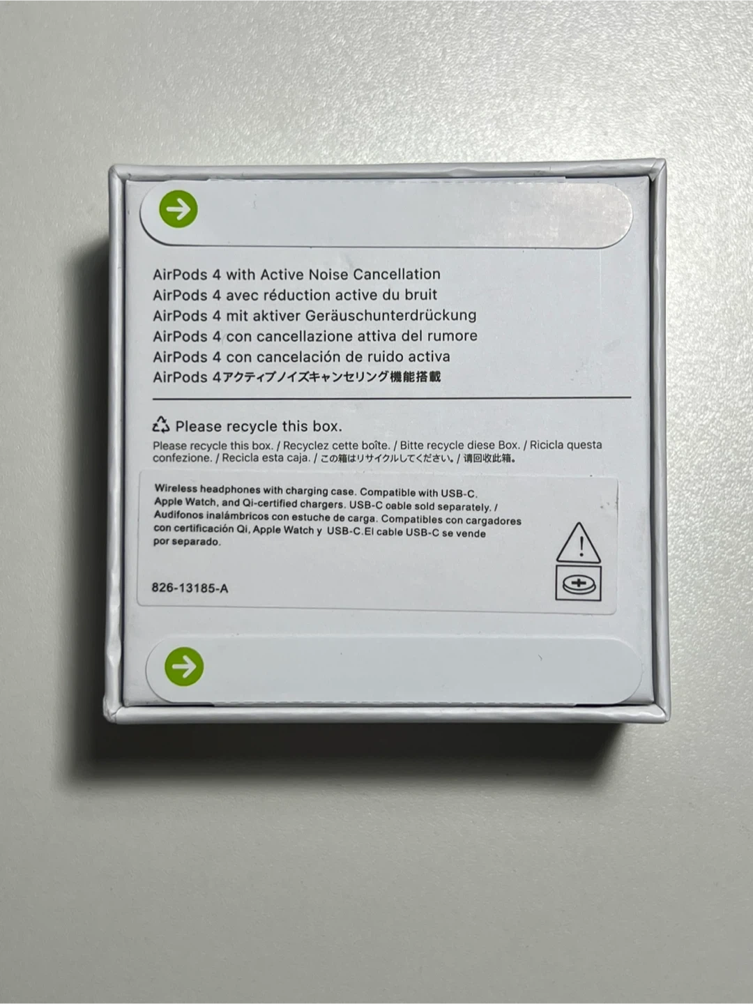 Wireless earbuds with Active Noise Cancellation. Includes charging case and USB-C cable. Compatible with USB-C charging. Designed by Apple in California.