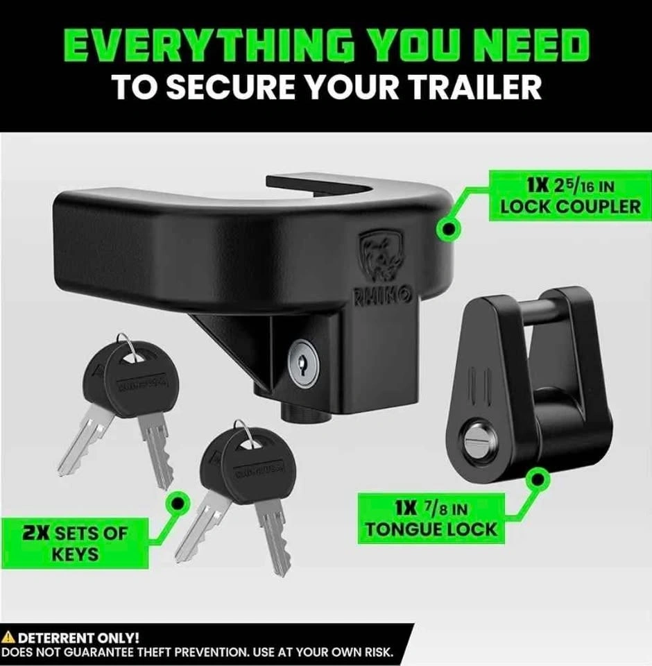 Heavy Duty Powder Coated Finish Shields Against Rust, Corrosion, and Harsh Weather, Ensuring Long-Lasting Protection for Your Trailer Hitch Coupler Lock.