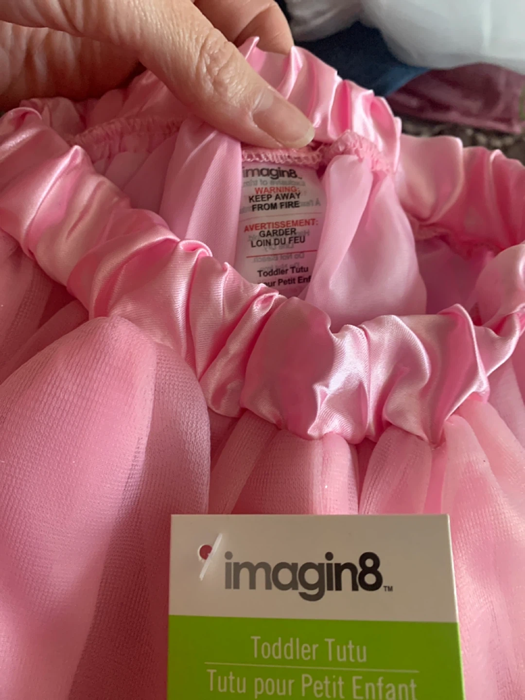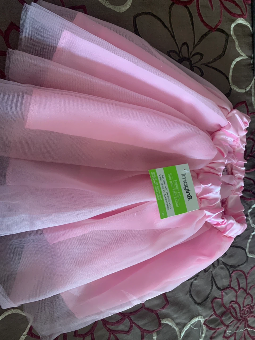 This is a pink toddler tutu from Imagine 8. It's made of a soft, flowy material. This tutu is perfect for dress-up or special occasions! Mavis and Eglinton