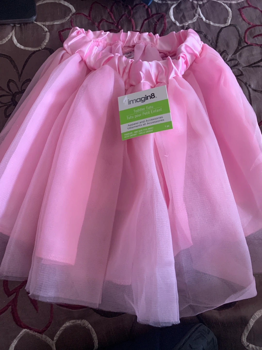 This is a pink toddler tutu from Imagine 8. It's made of a soft, flowy material. This tutu is perfect for dress-up or special occasions! Mavis and Eglinton