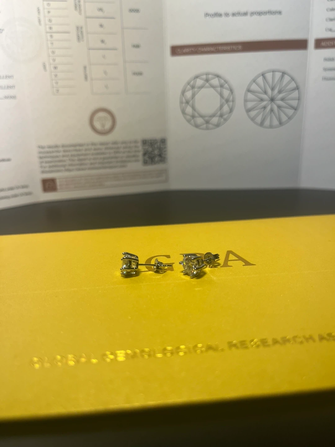 Elegant and timeless moissanite stud earrings featuring VVS1 clarity stones with D colour and excellent cut, polish, and symmetry, confirmed by an official GRA moissanite report.