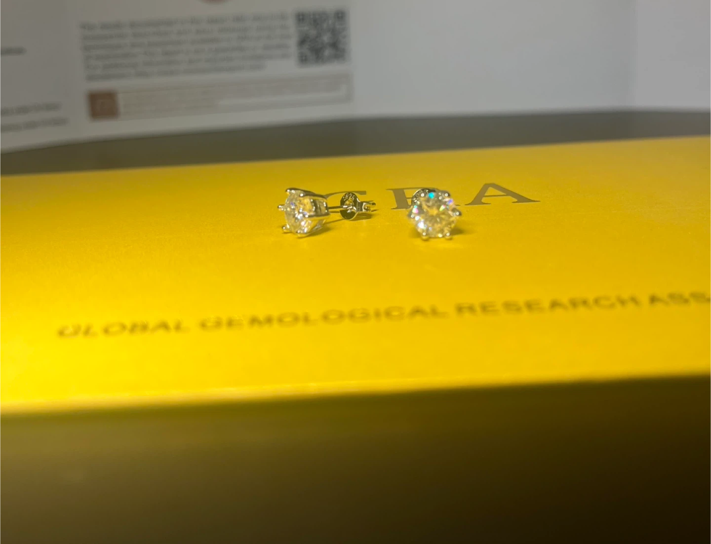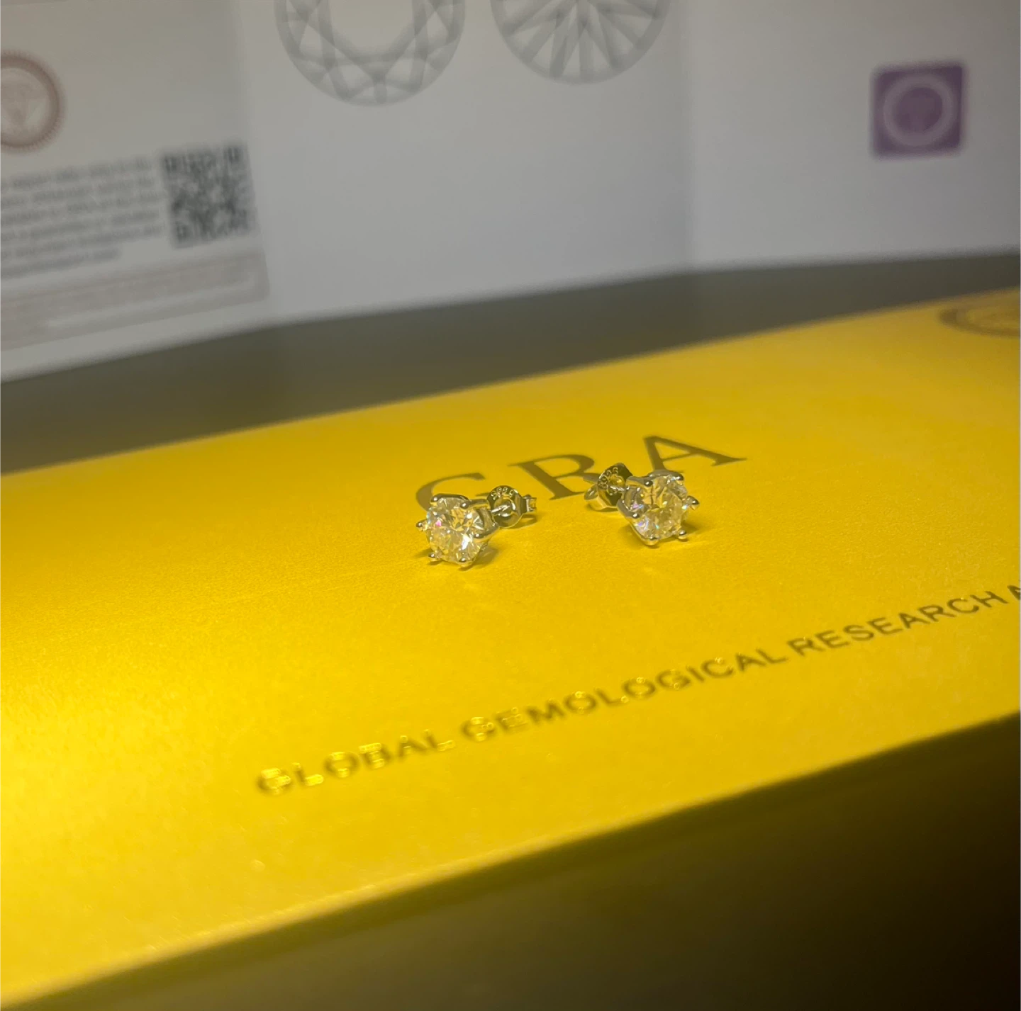 Elegant and timeless moissanite stud earrings featuring VVS1 clarity stones with D colour and excellent cut, polish, and symmetry, confirmed by an official GRA moissanite report.
