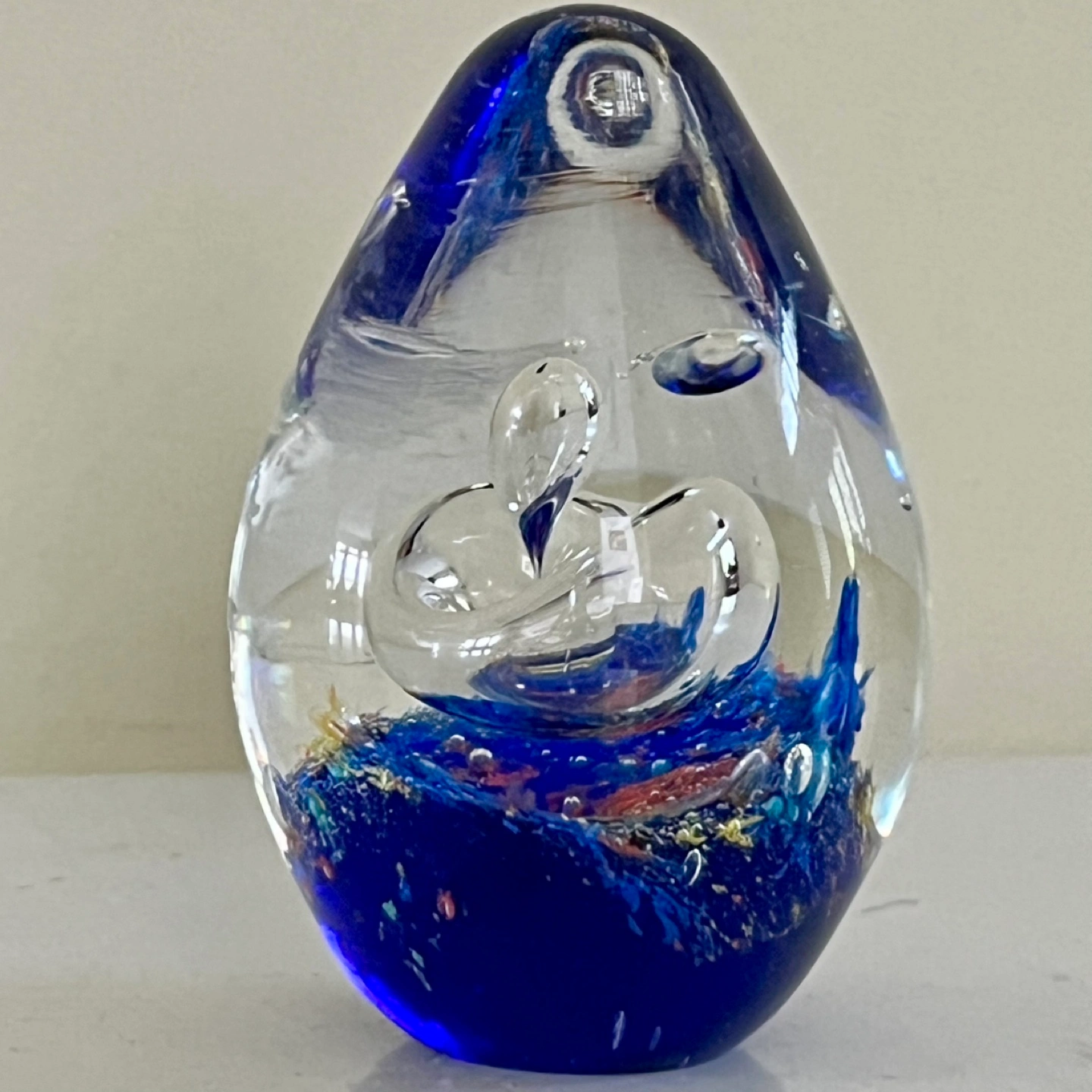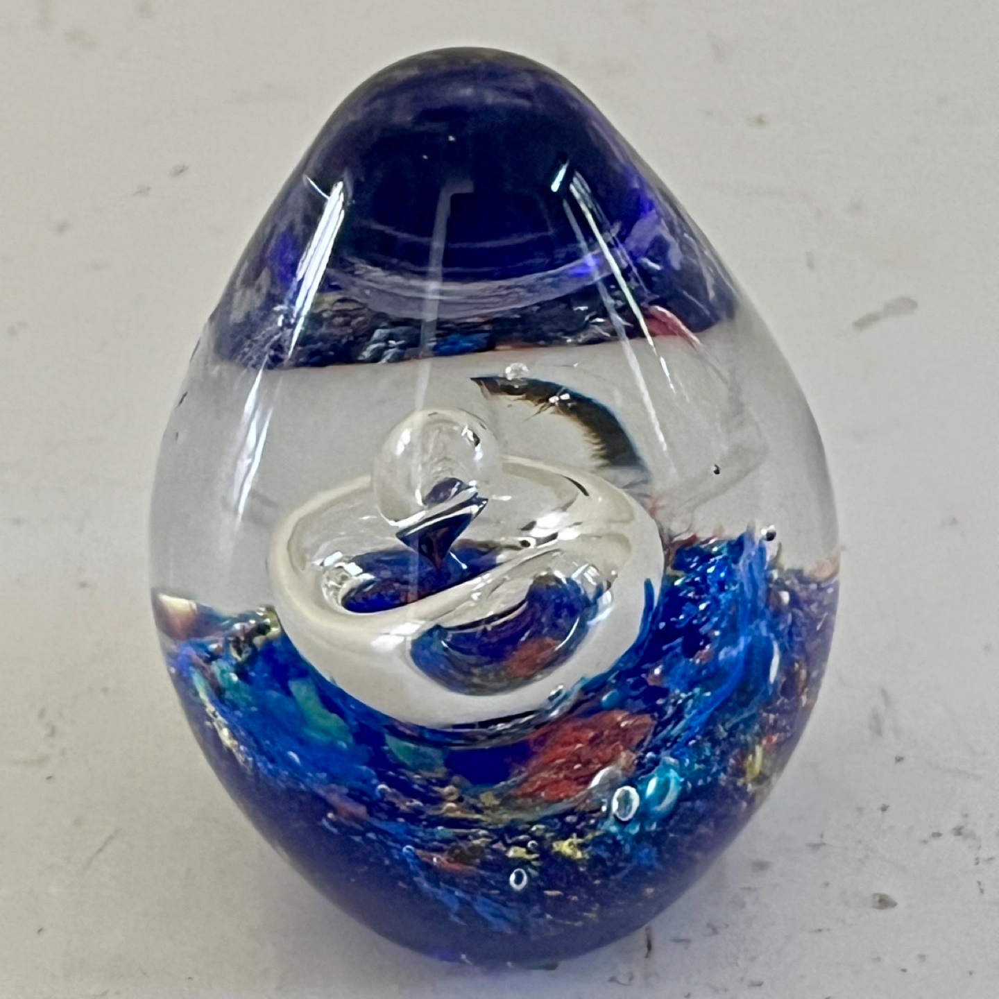 Stunning Murano-style glass egg. Handblown. Gorgeous colours. Measures 2.5” tall. Very heavy! Pick up Montgomery. Cross-posted.
