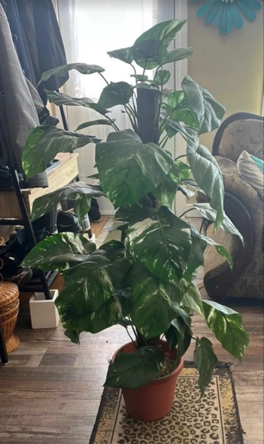 Large, artificial Philodendron Birkin. Beautiful variegation. Planted in a terracotta pot. Great addition to any plant collection.