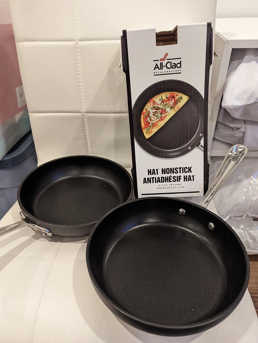 2* All Clad - 8" Non Stick Frying Pan - $25 each. Never been used. Note packaging says 10", but it's two 8" pans