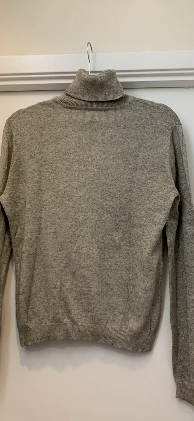 Ralph Lauren Petite turtleneck sweater in a light grey colour. It's made with 83% silk, 14% cashmere, and 1.5% nylon with elastane. Size is P/L.
