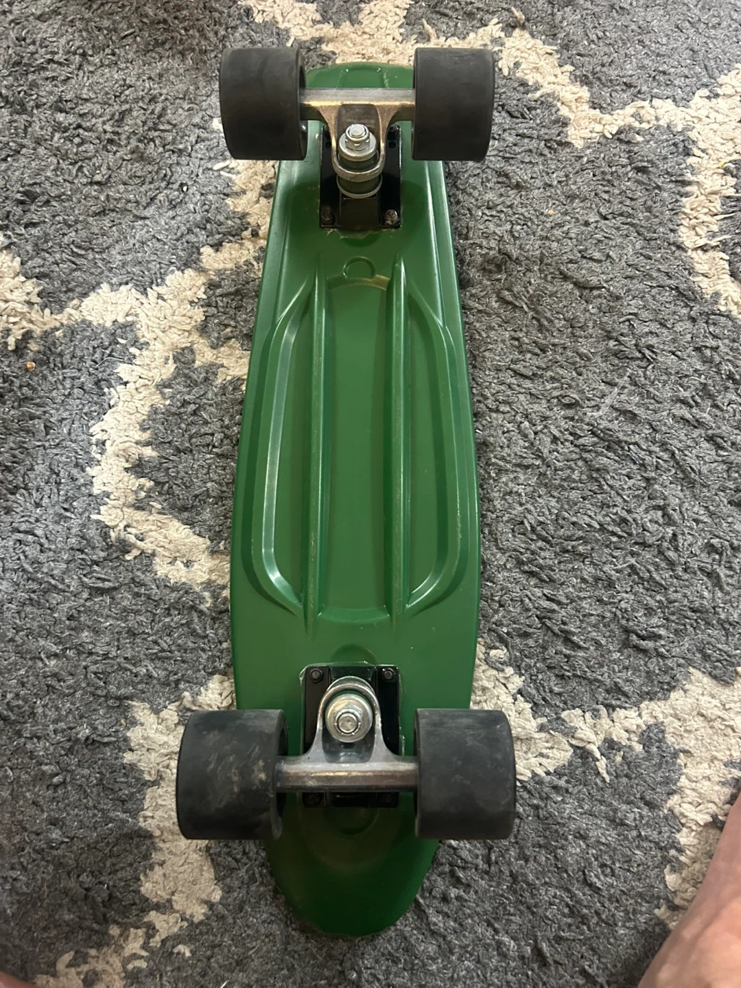 Buy & SellGreen Penny Board SkateboardGreen Penny Board Skateboard$35This is a green Penny board skateboard. It has a plastic deck and rubber wheels.WHERE TO MEETCheck LocationView MapSELLERFadiParkwoods12413 reviews0 chats·0 favorites·4 viewsSEND CHAT TO SELLERHi Fadi! I’m interested in your listing.Hi Fadi! I’m interested in your listing.Get the Karrot app to chatSign In to chat