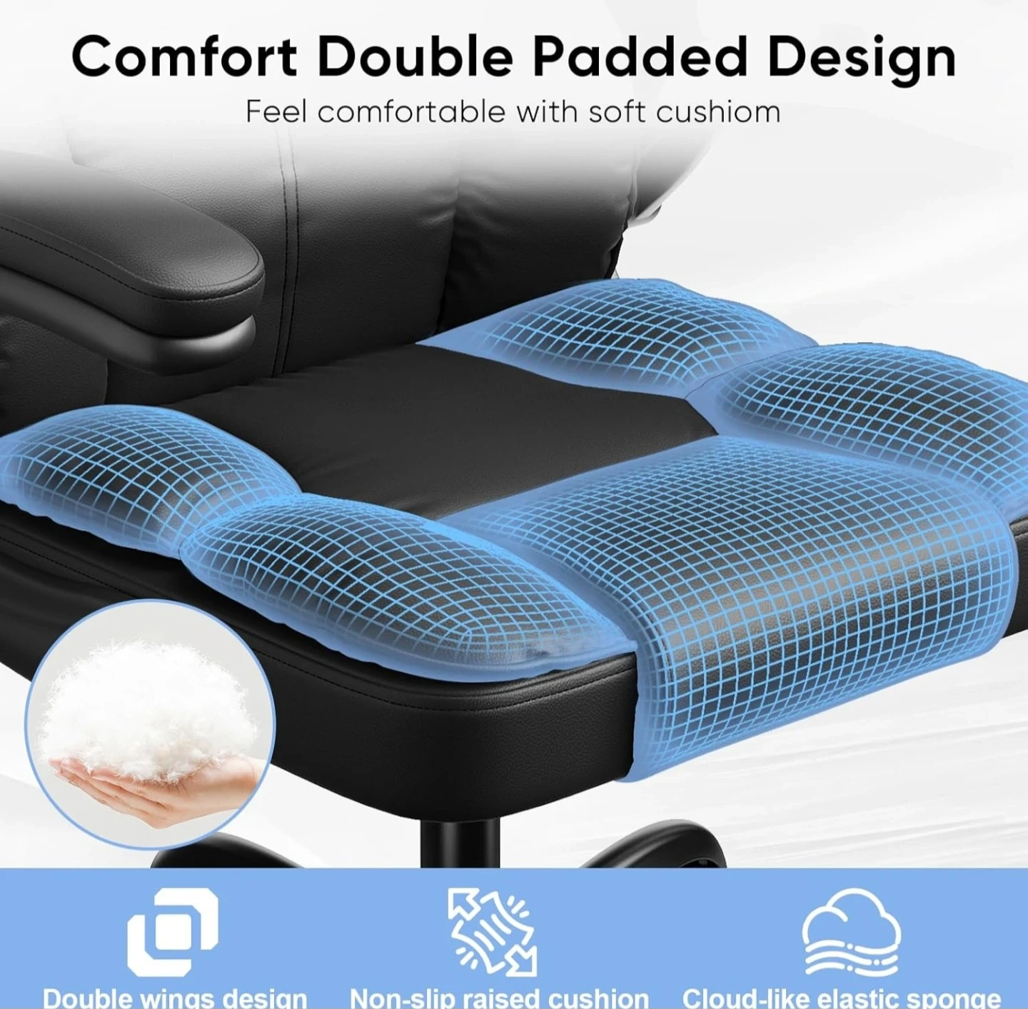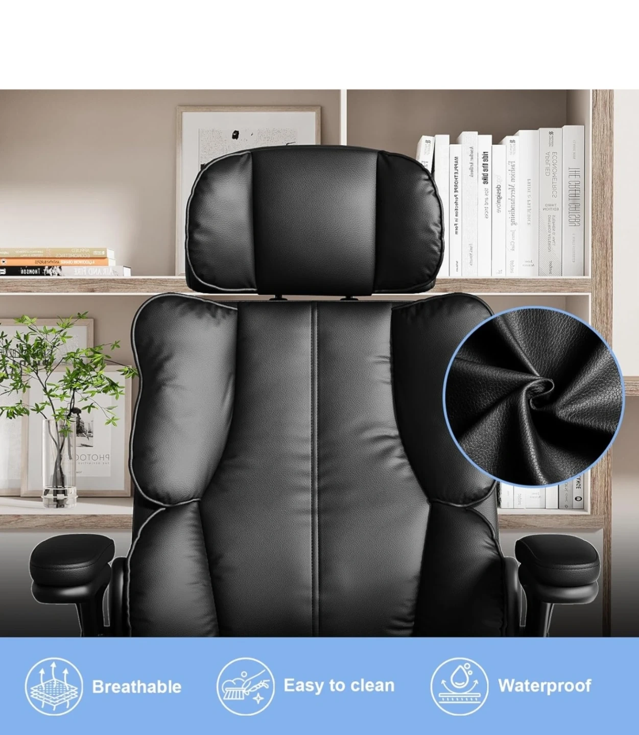 This black ergonomic office chair offers multiple adjustable functions for your comfort. It features a flip-up armrest, adjustable headrest, and adjustable height, plus a 90-135° tilt lock. The chair has S-shape lumbar support and a double padded design for extra comfort. Weight capacity is 300lbs.