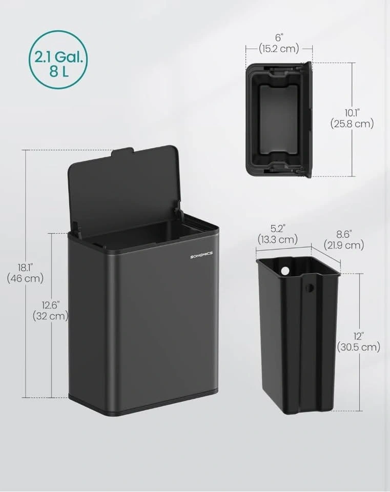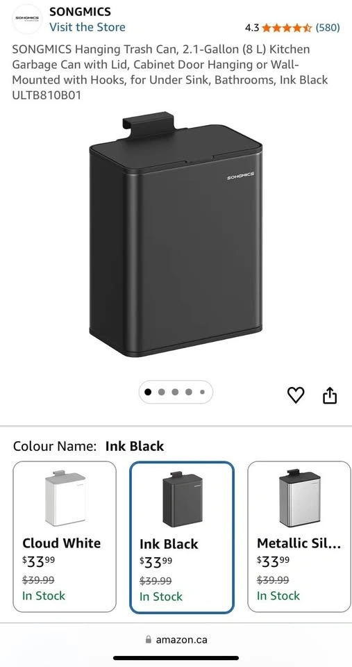 Versatile SONGMICS trash can. This 8L (2.1-gallon) black bin is super handy. Has a lid and can be used freestanding, hung on a cabinet door, or wall-mounted. Great for kitchen, bathroom, or under the sink. Pick up near Brock Road and Rex Heath Drive in Pickering. 2 available.