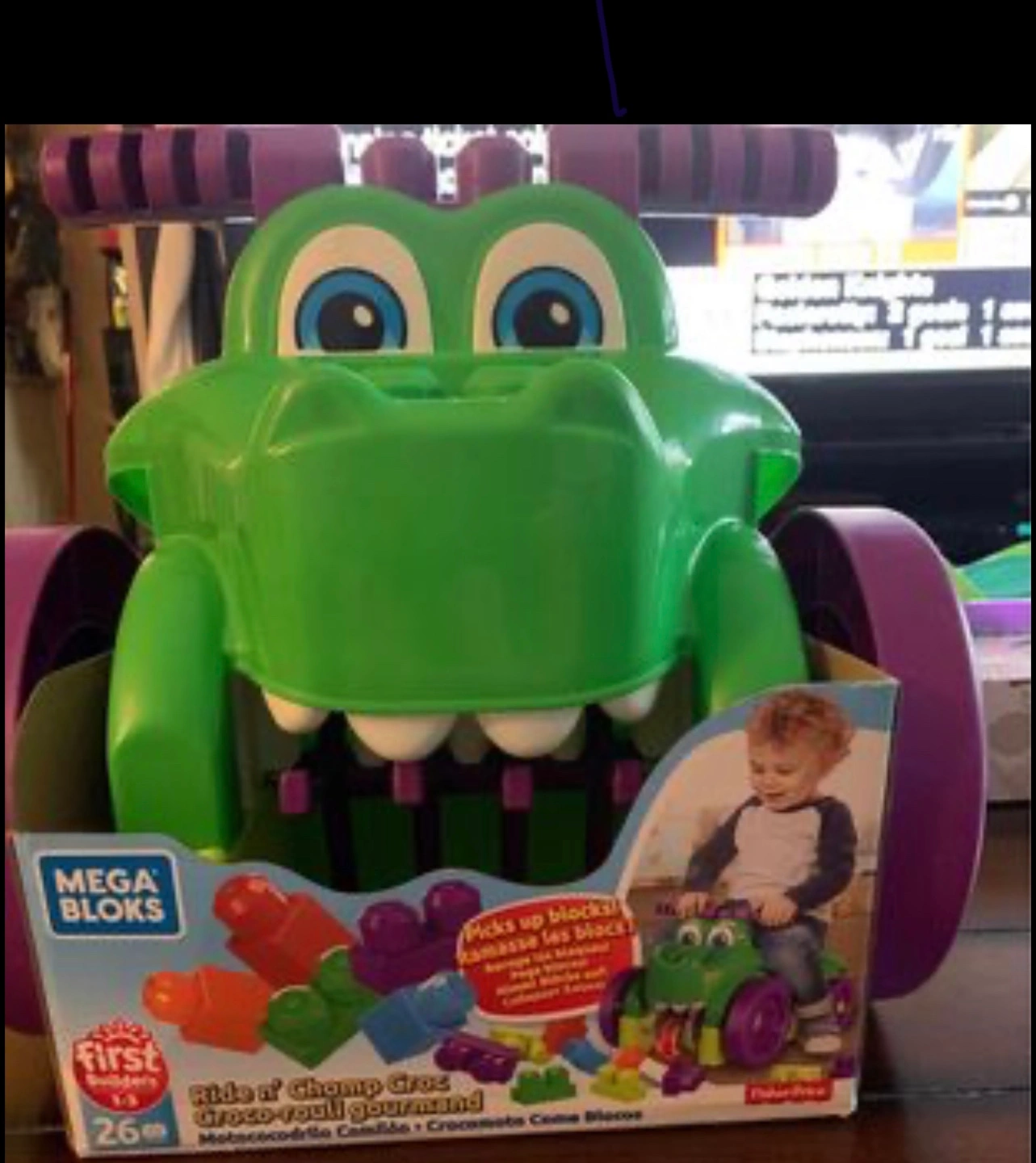 I have a ride and chomp croc your child can ride over blocks and it picks them up asking $15