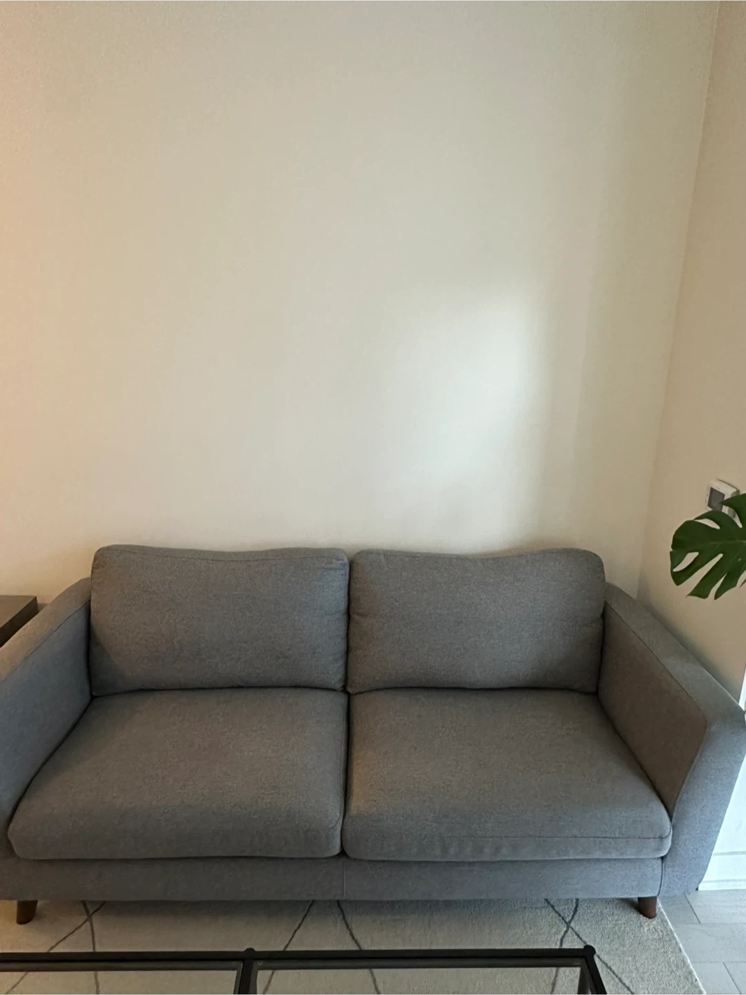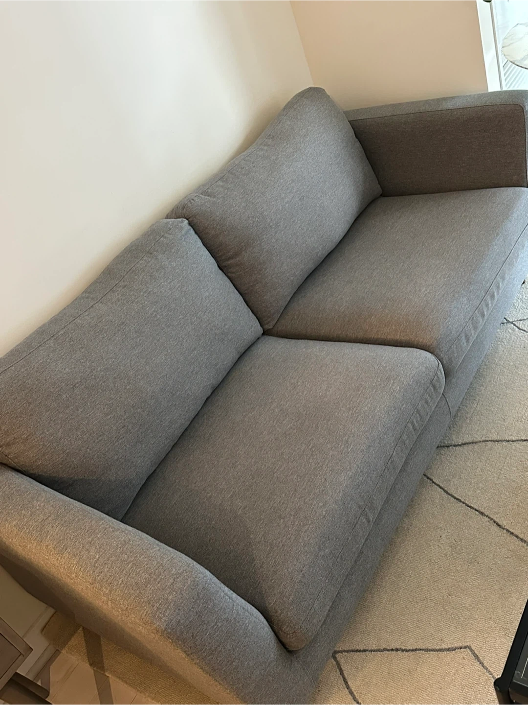 Sofa in great condition with washable fabric. Available as part of a moving sale! Pickup