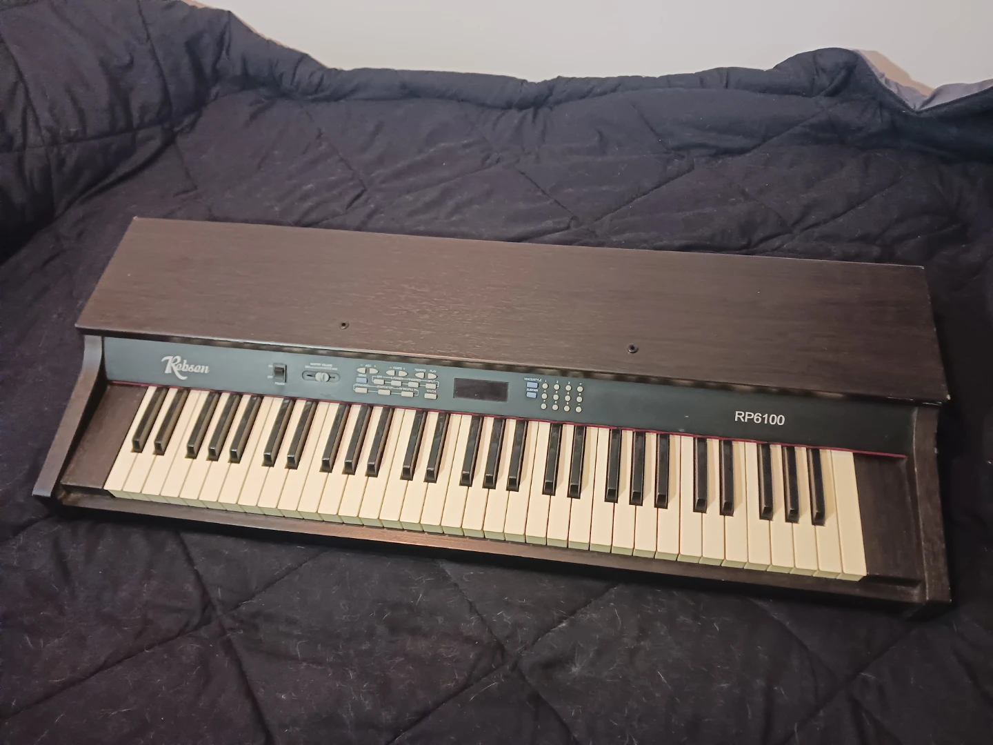 Robson RP6100 digital piano. Electronic 61-key keyboard. It's great for beginner musicians or for practicing. (Cat not included)