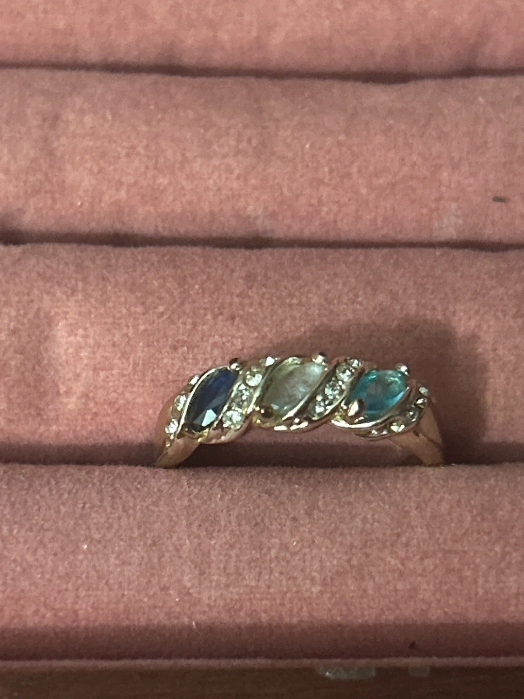 Silver Tone Ring with Blue and Green Stones π