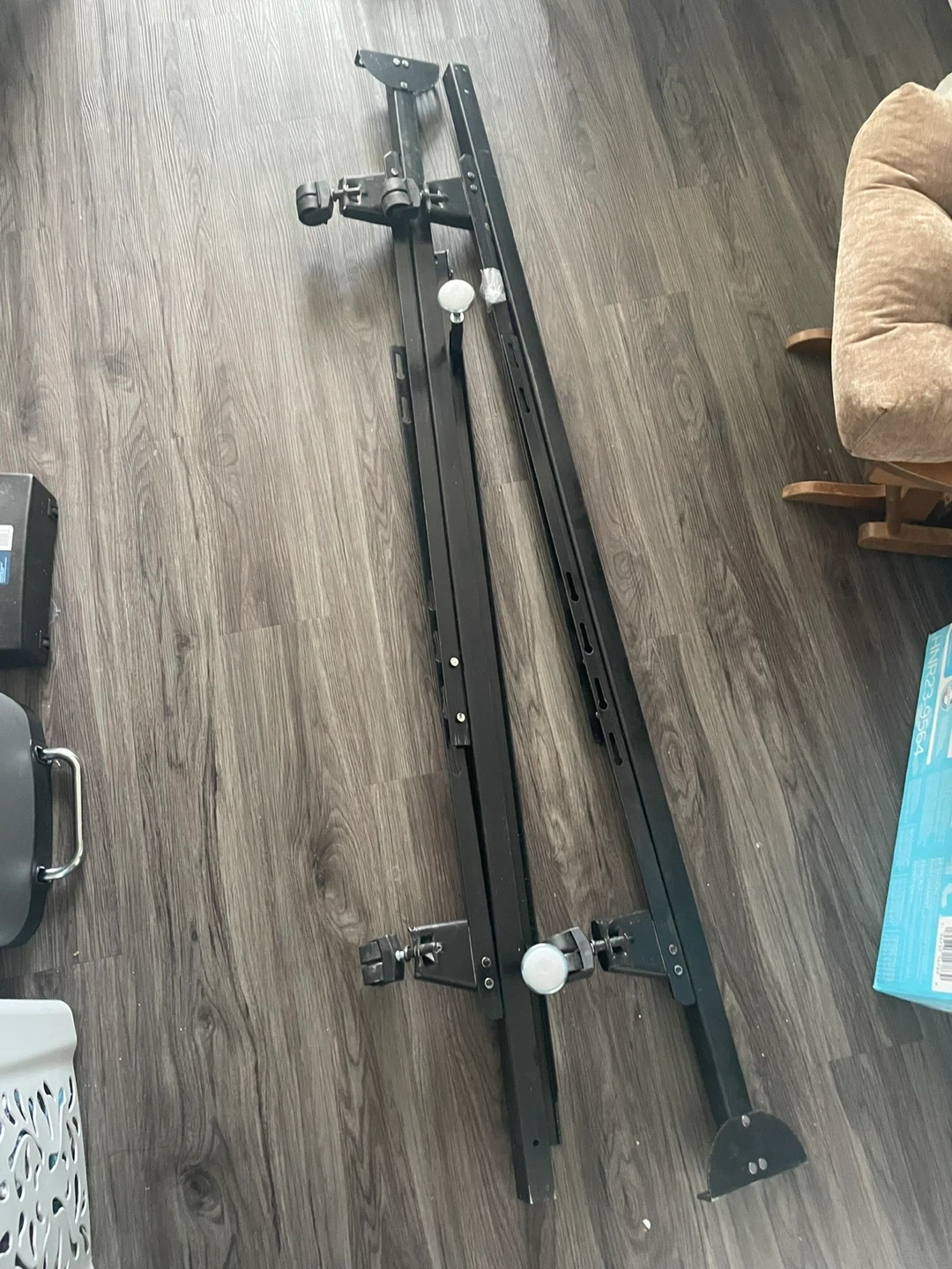 These are parts for a black metal bed frame. It's made of sturdy metal construction. Fits a double/full and queen or king-sized bed.