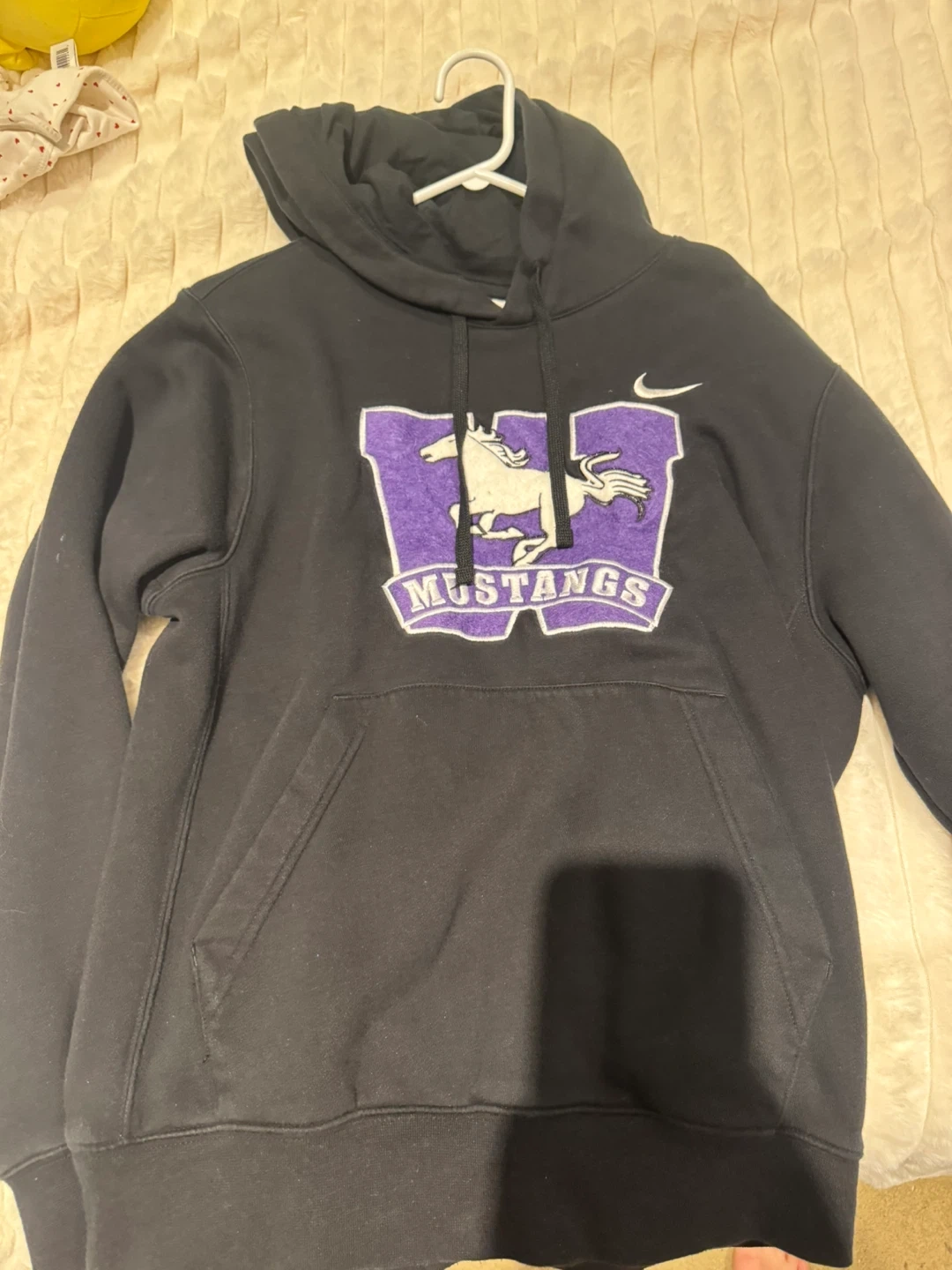 Here's a Nike hoodie with the Mustangs logo! It's a size small and in great condition. Perfect for showing off your school spirit or just staying comfy