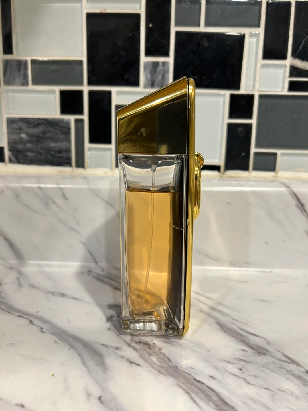 Paco Rabanne 1 Million Elixir Eau de Parfum for men. A rich and long-lasting fragrance. The bottle design is iconic with its gold finish and unique shape.
