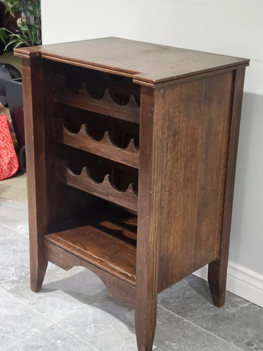 Sturdy real wood wine rack, can hold up to 12 bottles, still in pristine condition.