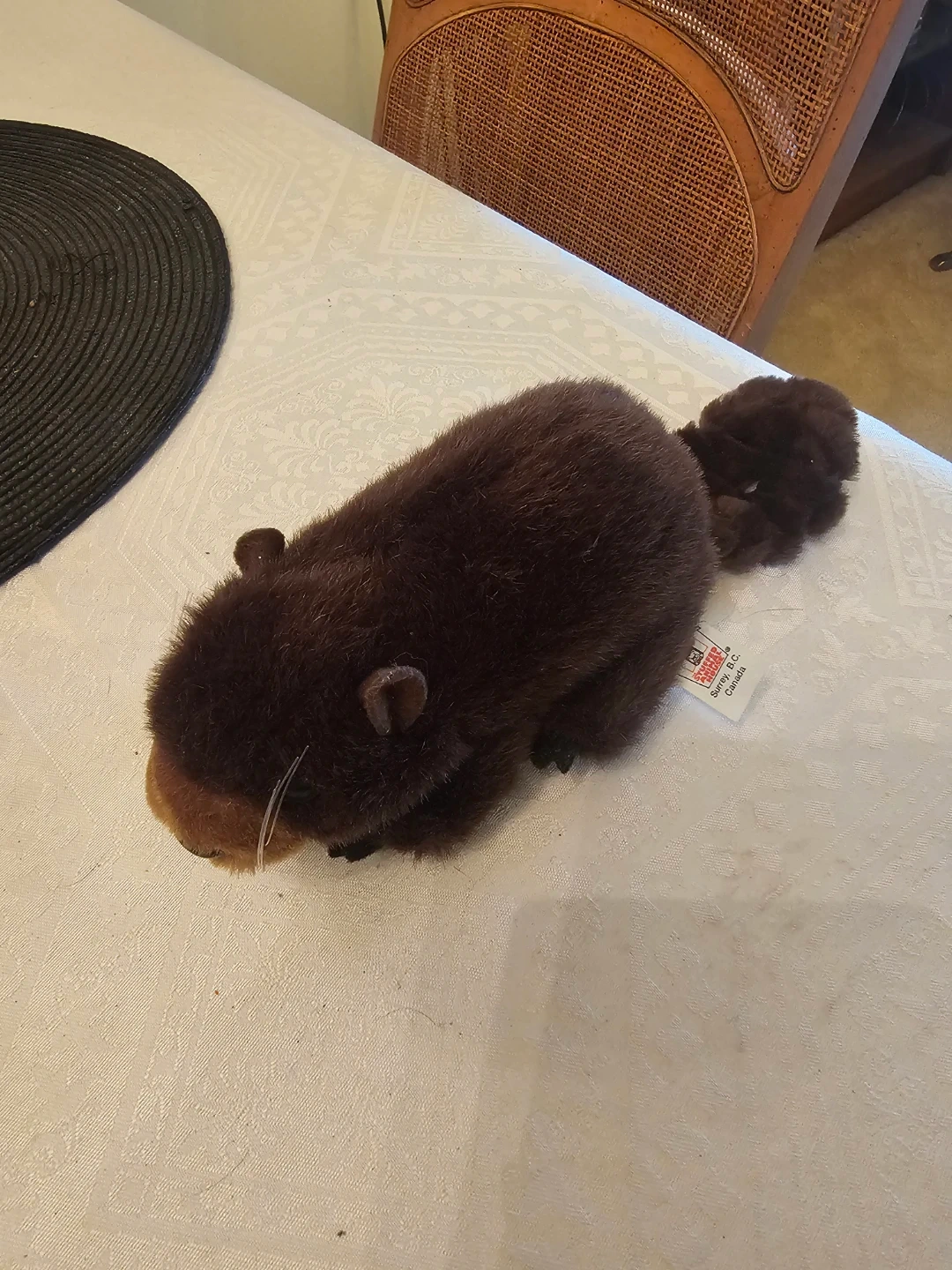 This is a soft stuffed beaver plush toy. It's made by Stuffed Animal House in Surrey, B.C., Canada. It's a cute toy for kids or collectors!