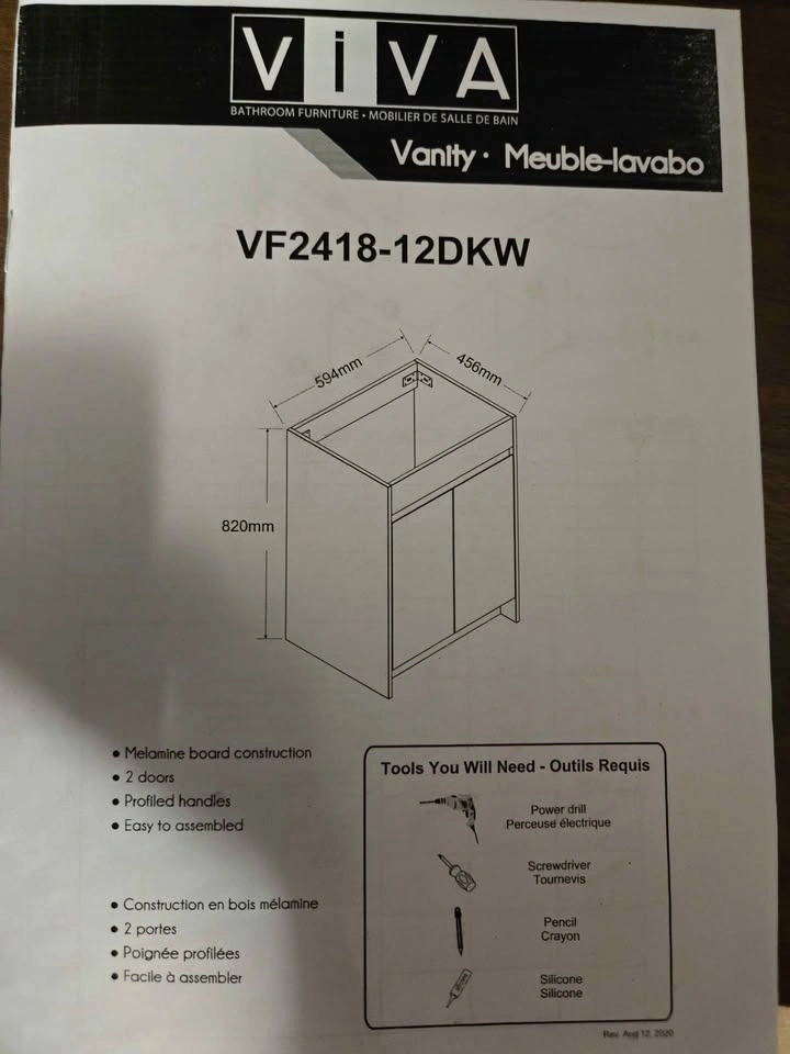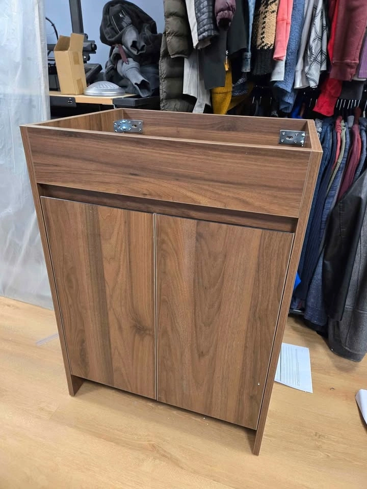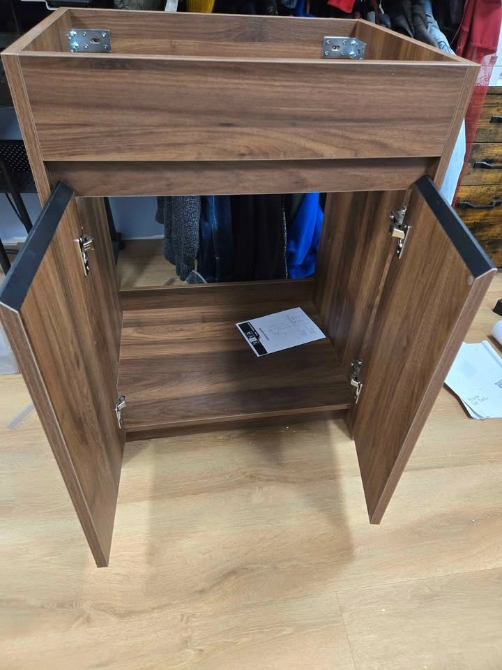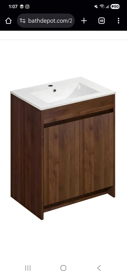 These items are brand new. We just took the vanity out of the box and assembled it and realized it was too deep for our space. The sink is still in the box. Asking 300 for both. 24 wide by 18 deep.