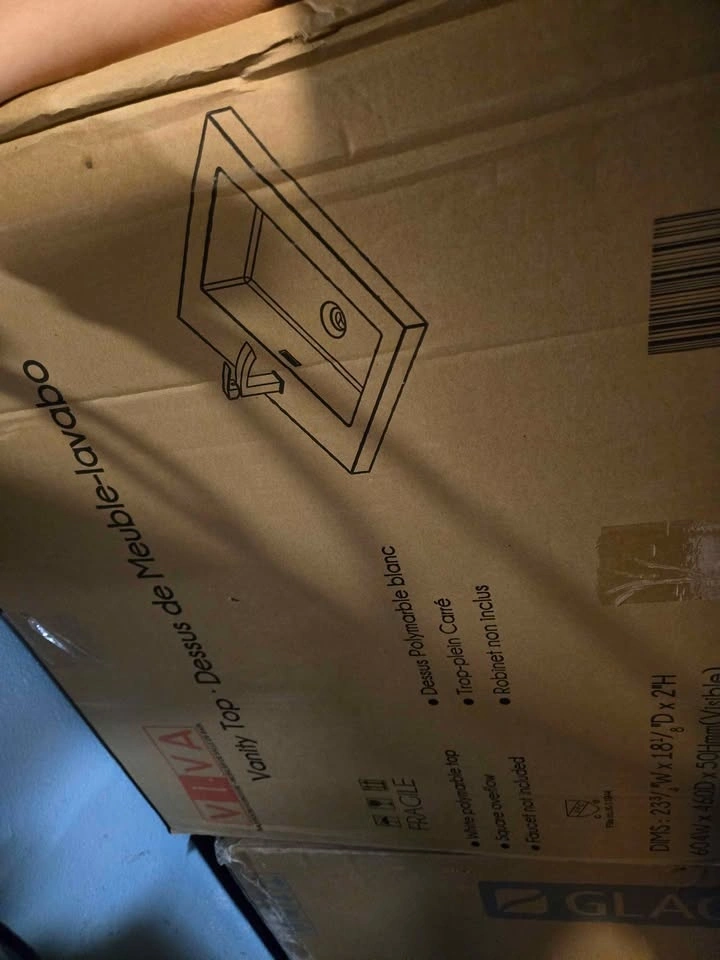 These items are brand new. We just took the vanity out of the box and assembled it and realized it was too deep for our space. The sink is still in the box. Asking 300 for both. 24 wide by 18 deep.