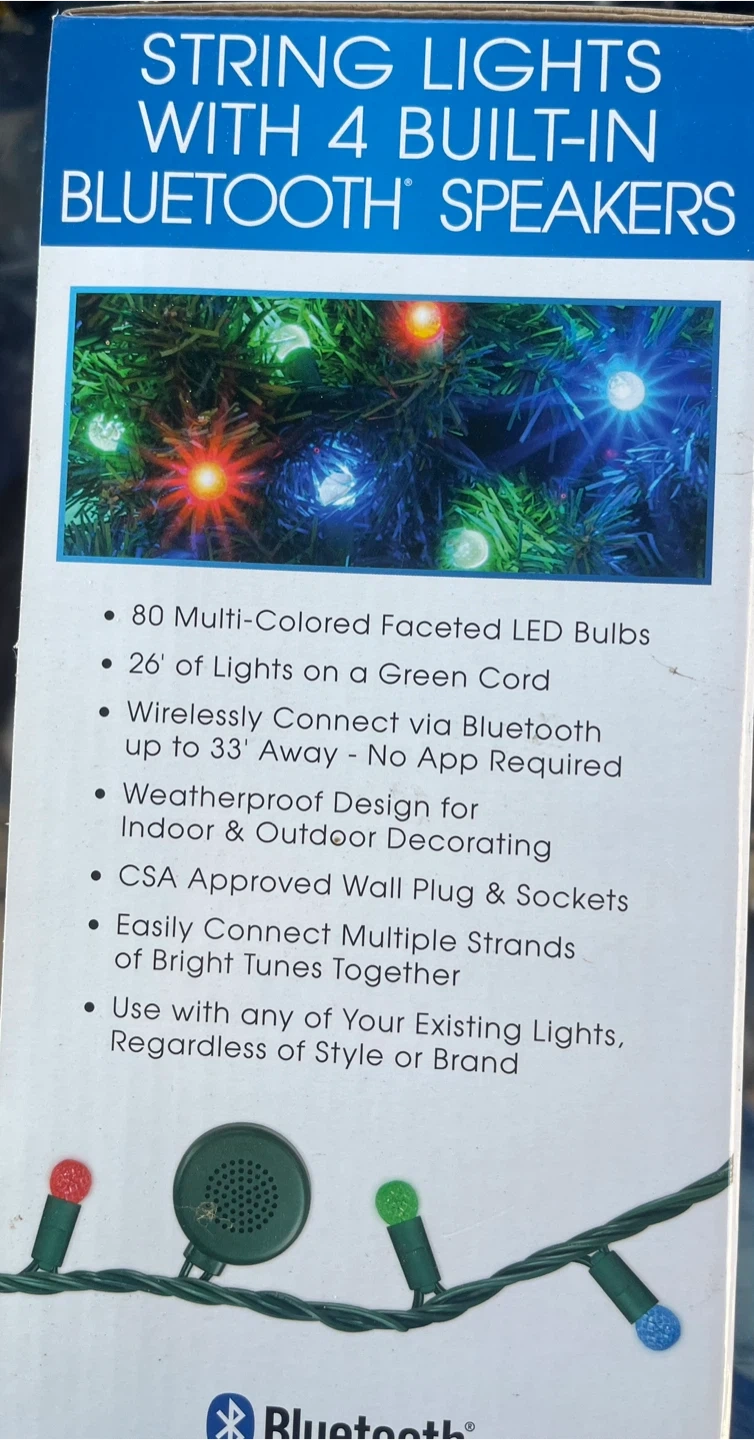 Selling a set of Bright Tunes string lights with four built-in Bluetooth speakers!