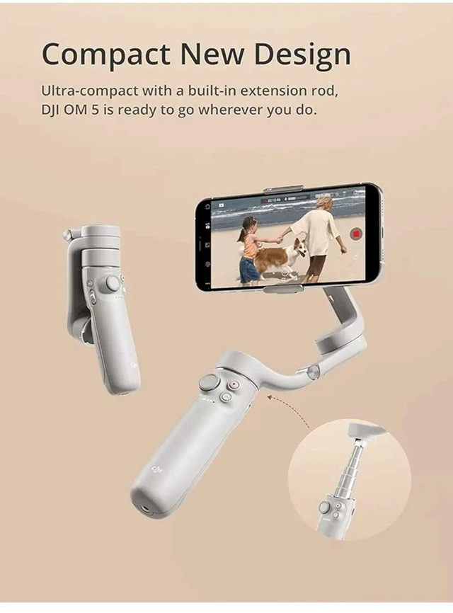 Capture smooth, professional-quality video with this DJI OM 5 Smartphone Gimbal Stabilizer. This 3-axis phone gimbal is in like-new condition and ready to help you create stunning content. It’s perfect for vloggers, travelers, and anyone who wants to up their mobile filmmaking game. Specifications: * Brand: DJI * Model: OM 5 * Type: 3-Axis Gimbal Stabilizer * Compatibility: Smartphones * Condition: Like New Don't miss out on this fantastic tool for creating cinematic videos on the go! And hey, if the ad's still up, it means this magical gimbal is still waiting to be whisked away to its new home!