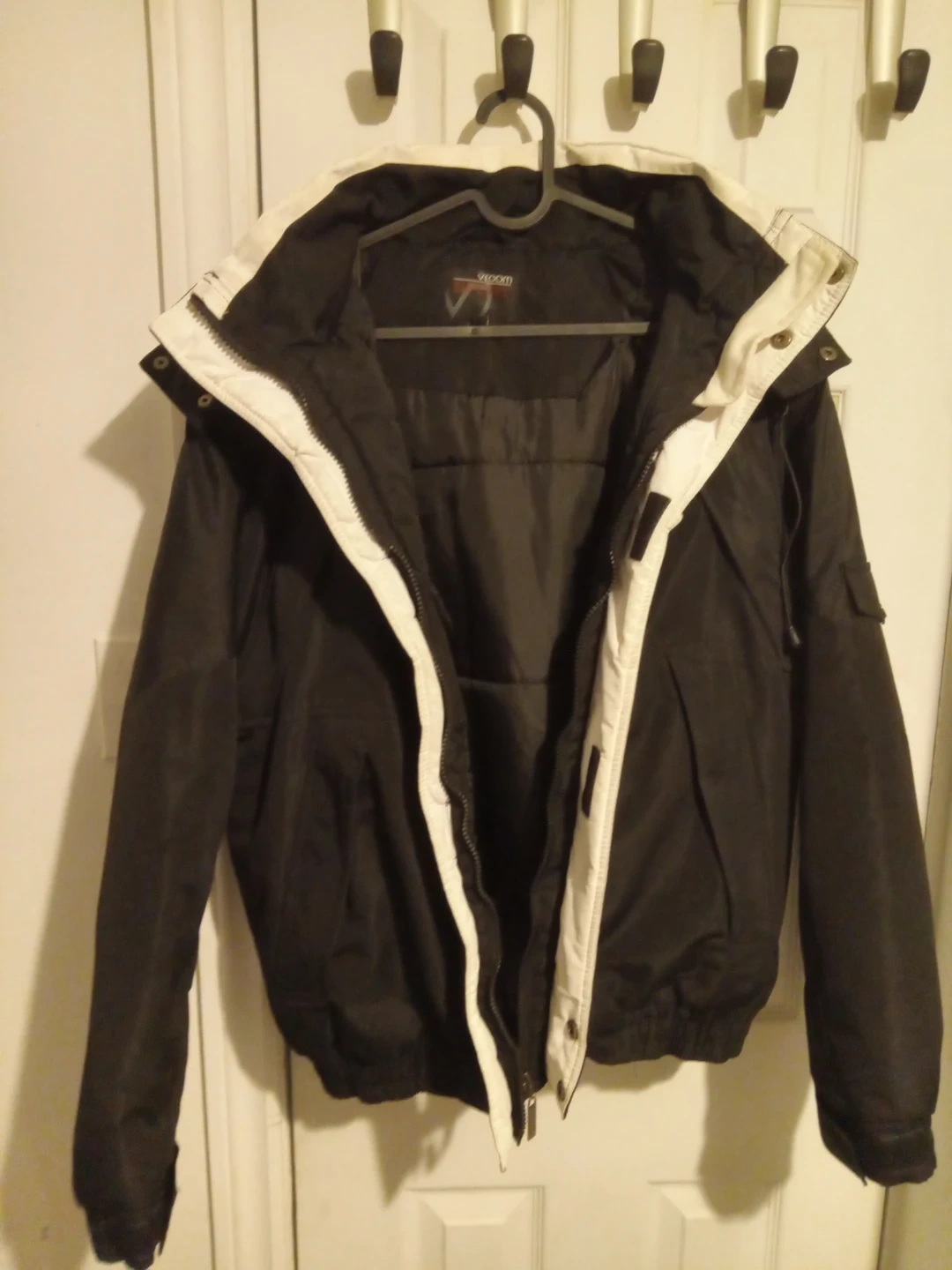 Serious people only. Black and white womens Vicom V2 jacket. Insulated lining with interior pockets. Hood is detachable. Super warm sport winter jacket for women. Size is medium.