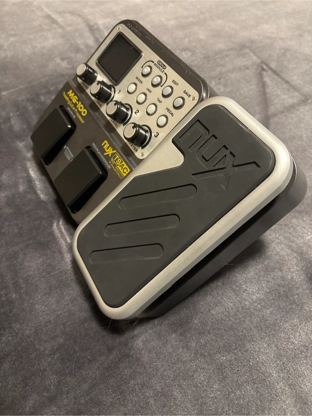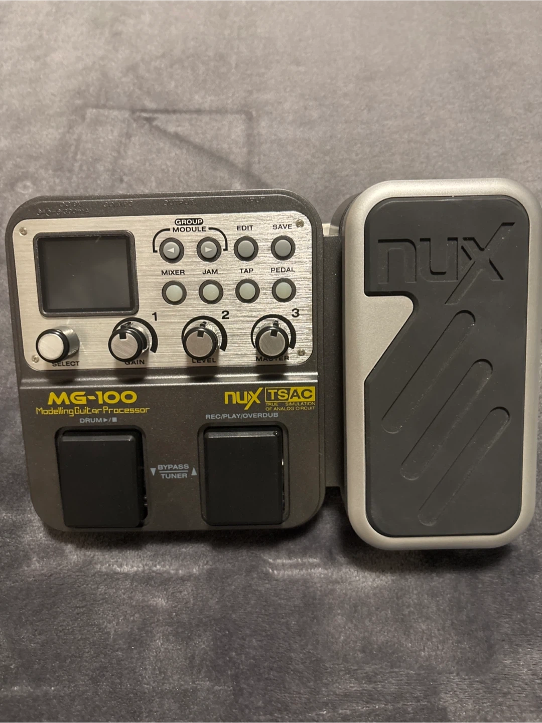 This NUX MG-100 is a modelling guitar processor with drum machine. With original box. It has a built-in expression pedal and offers amp modelling and effects. Great for guitarists looking to expand their sound options!