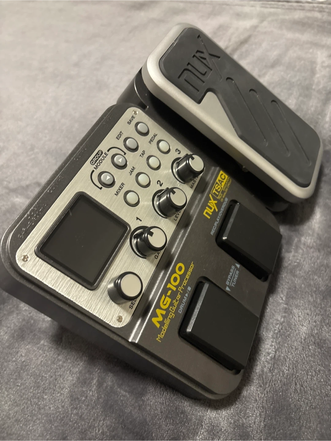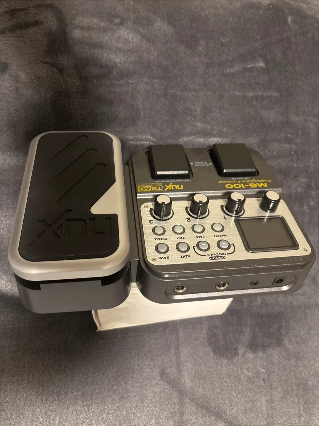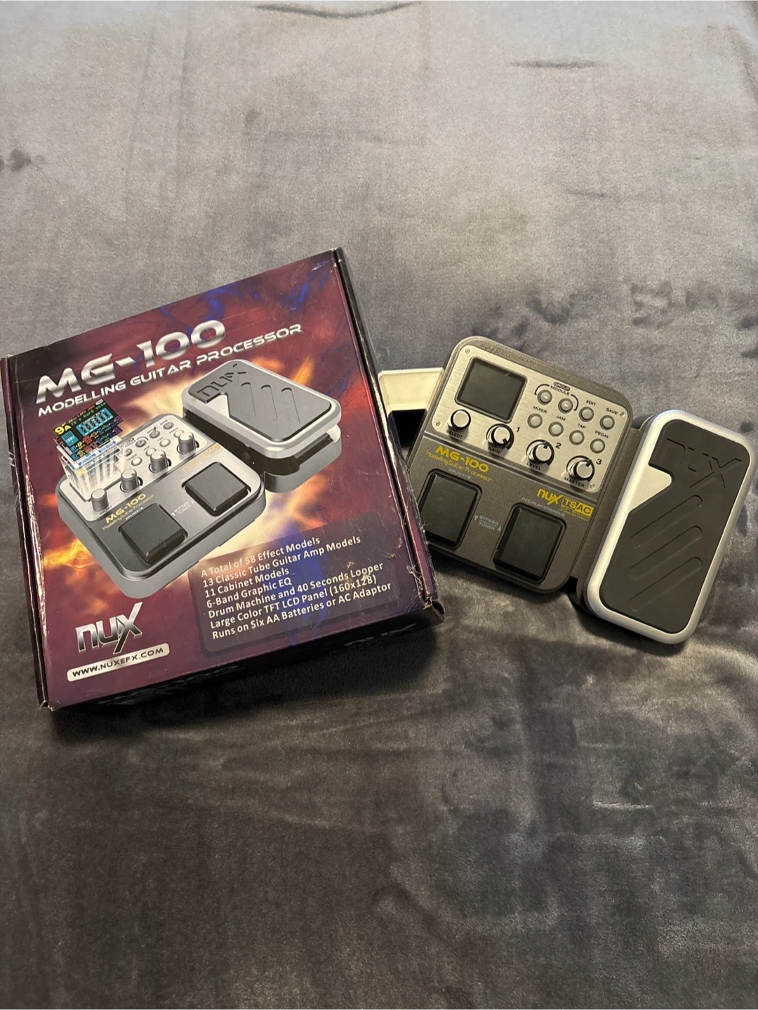 This NUX MG-100 is a modelling guitar processor with drum machine. With original box. It has a built-in expression pedal and offers amp modelling and effects. Great for guitarists looking to expand their sound options!