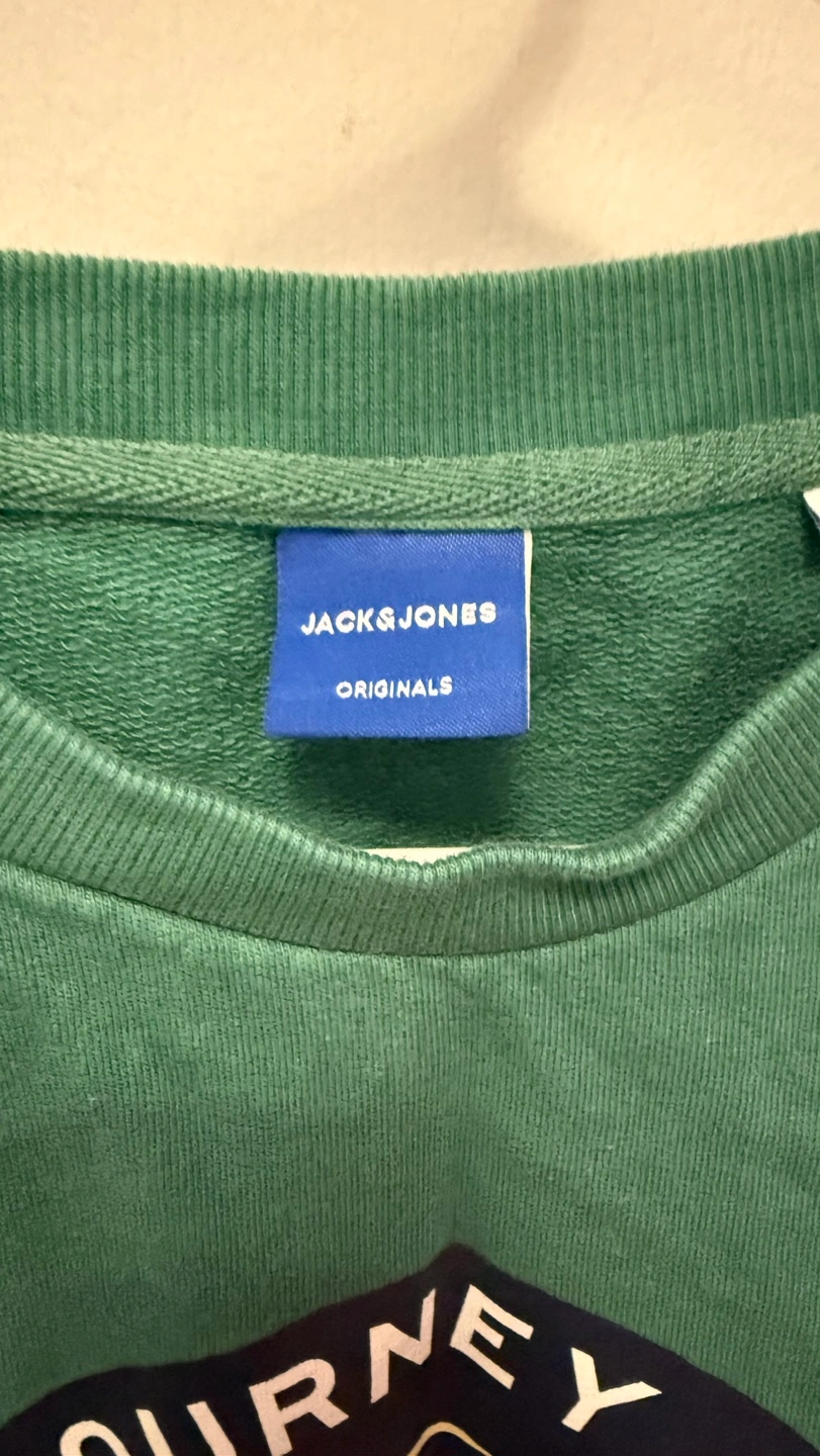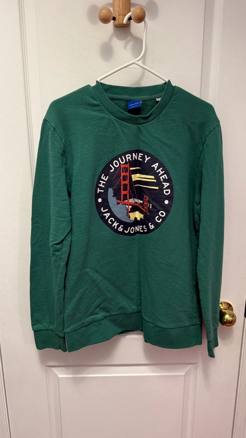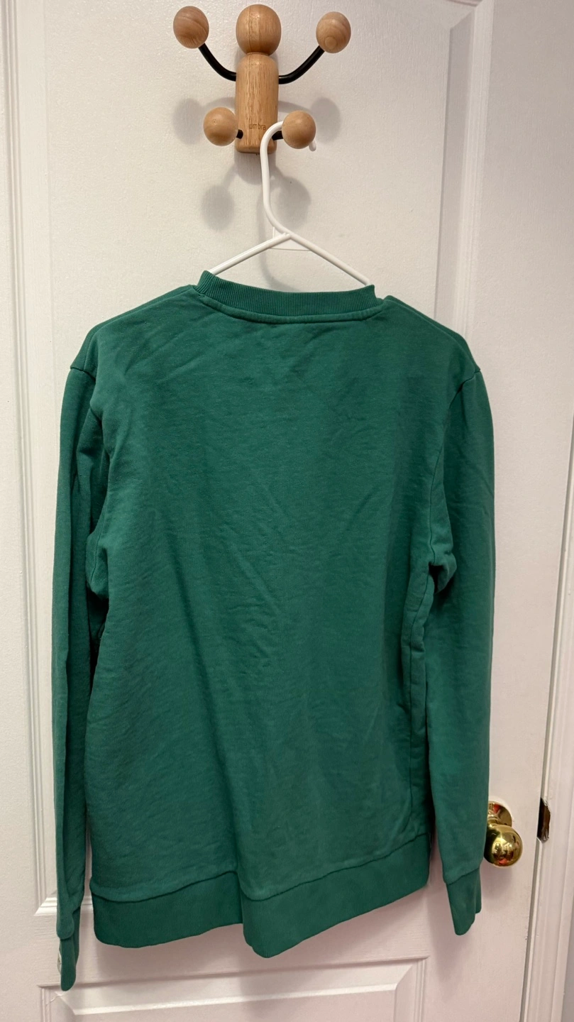 81Men's green crewneck sweatshirt. Features a graphic design on the front. Long sleeves, relaxed fit. Good condition. Available for pick up in Vaughan, Barrie and downtown Toronto