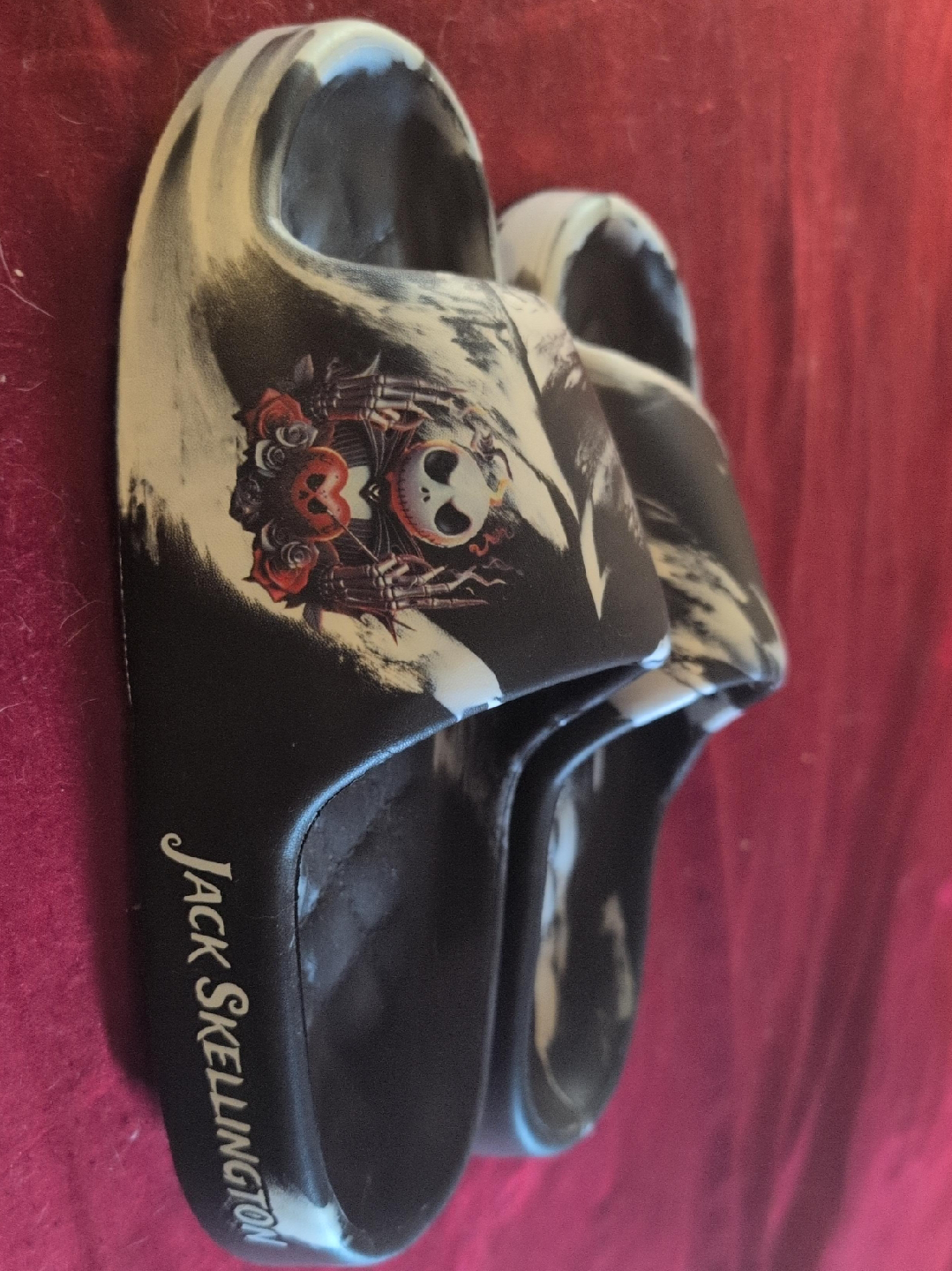 60Jack Skellington slides with a cool design! Perfect for lounging around the house or a quick trip outside