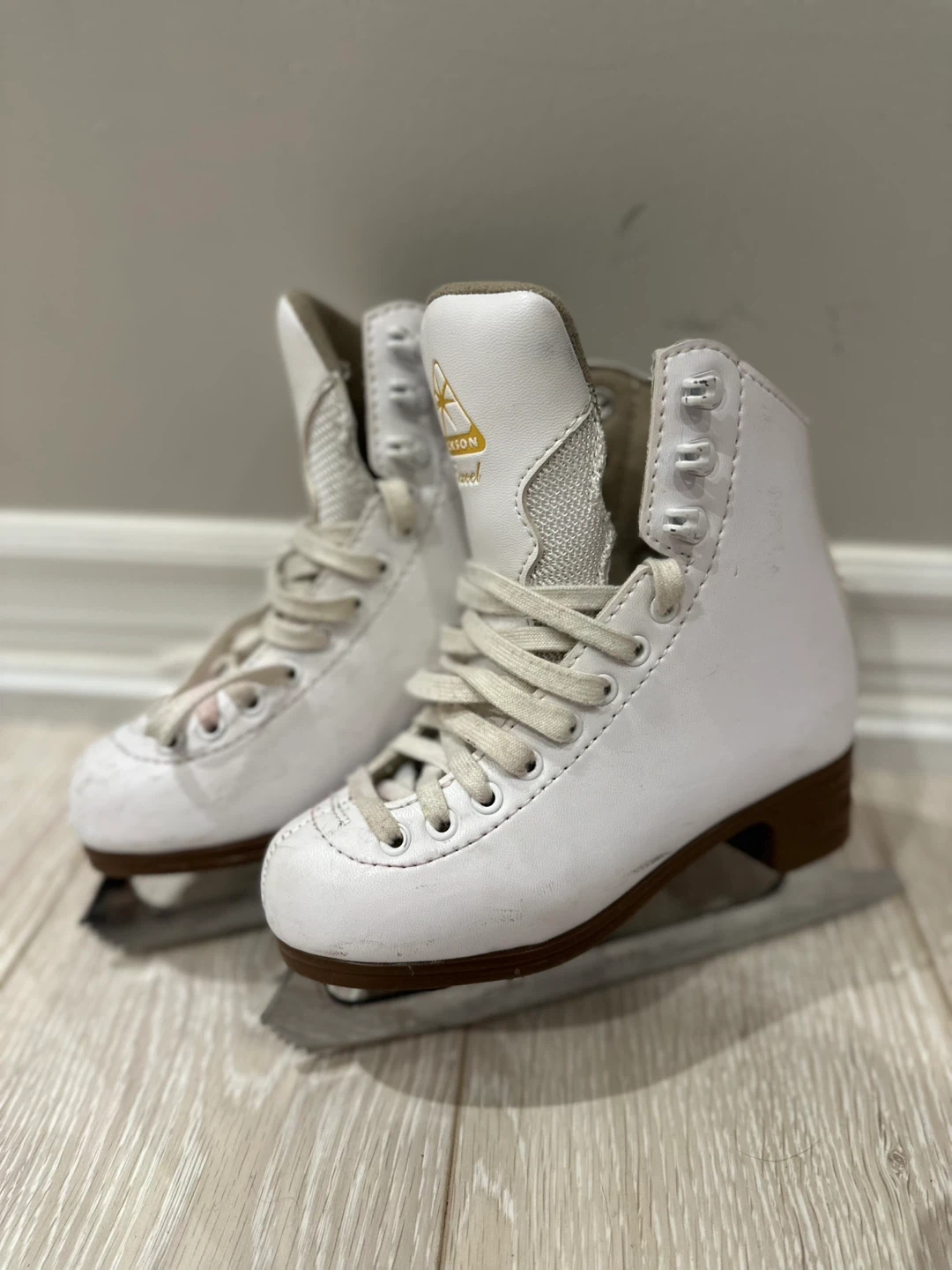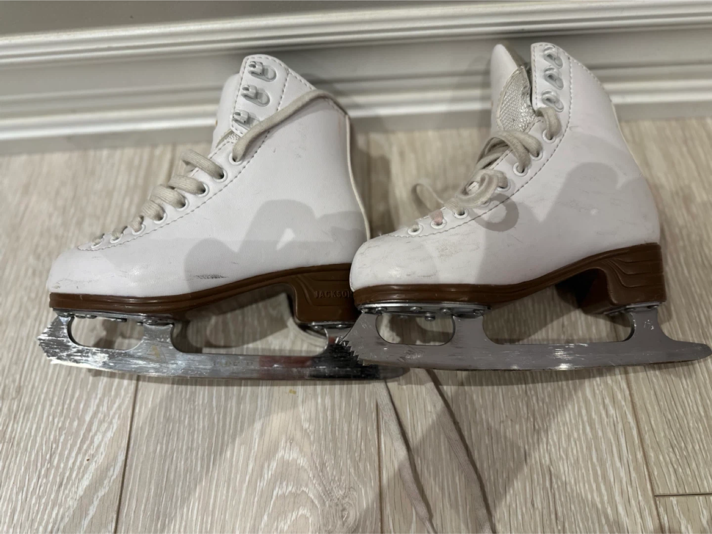 10Selling a pair of Jackson figure skates in size 12.5. They are white and show some signs of wear, but still have lots of life left! Perfect for recreational skating or learning new skills at the rink