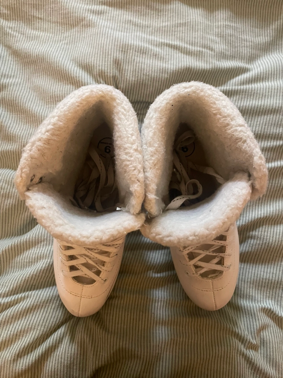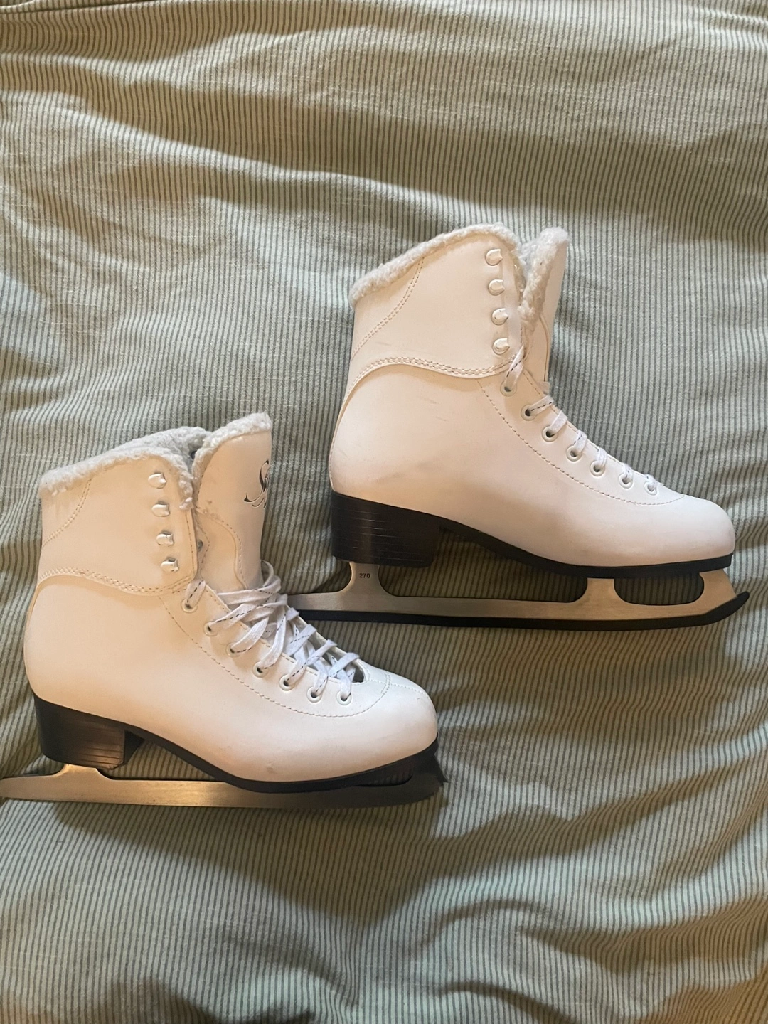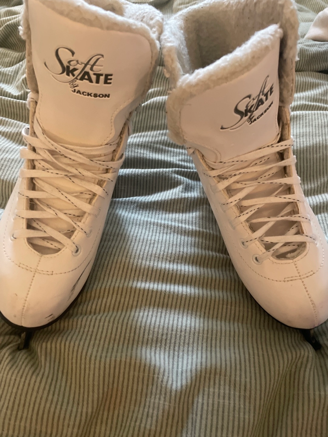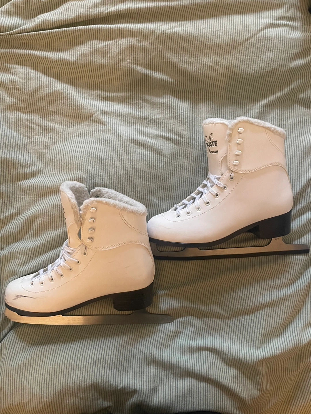 Selling a pair of Jackson SoftSkate ice skates in a women's size 9 women's . They have a soft, comfortable lining. There are some scuffs on the toes, but otherwise in good condition!