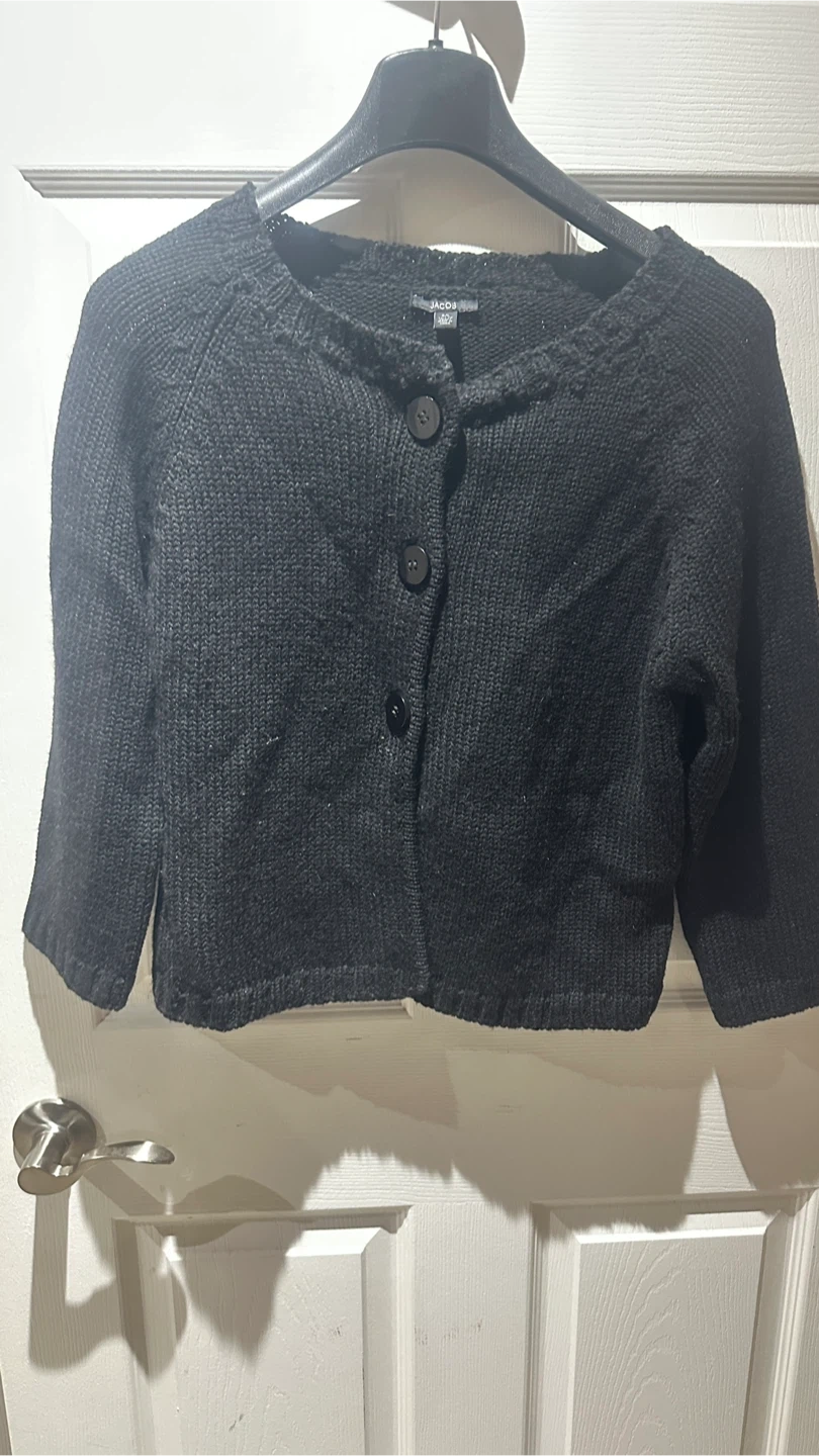 Cozy black knit cardigan from Jacob! It has a classic button-up design and is perfect for layering. Size large.