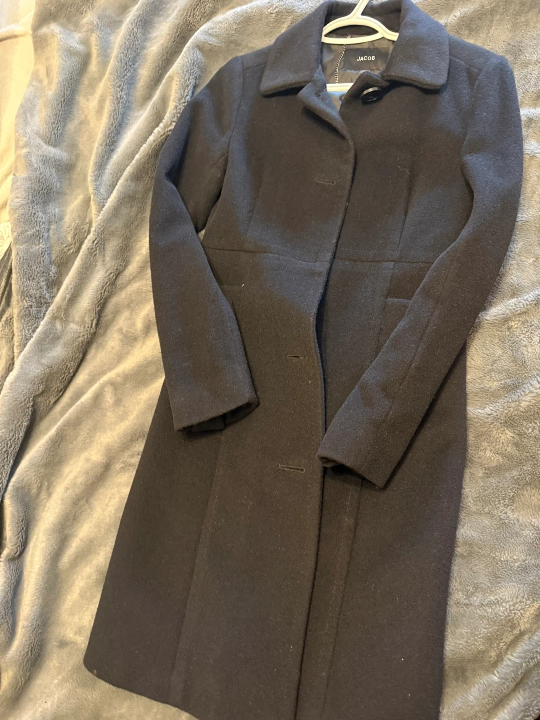 12Selling a Jacob wool blend coat in black. It's in great condition and perfect for the cooler weather. A stylish and classic addition to any wardrobe!