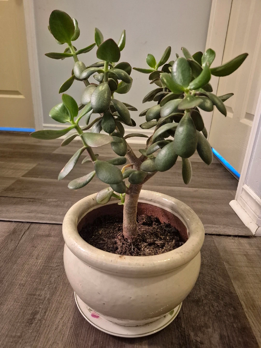 89A healthy jade plant in a ceramic pot is looking for a new home! It's a beautiful addition to any indoor space and easy to care for